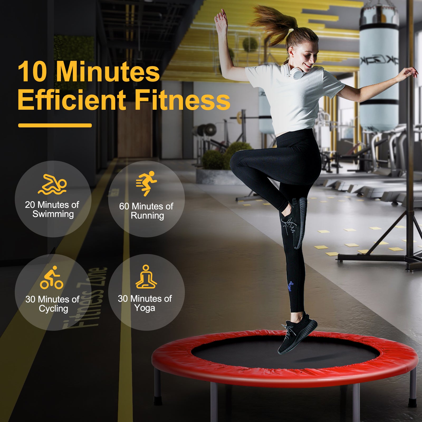 Jumping Cardio Trainer: Designed with high-elastic PP jumping mat and 32 springs, this home exercise trampoline not only provides excellent bouncing experience, but also increases your stamina, improves muscle density and promotes blood circulation, helping you build perfect shape.