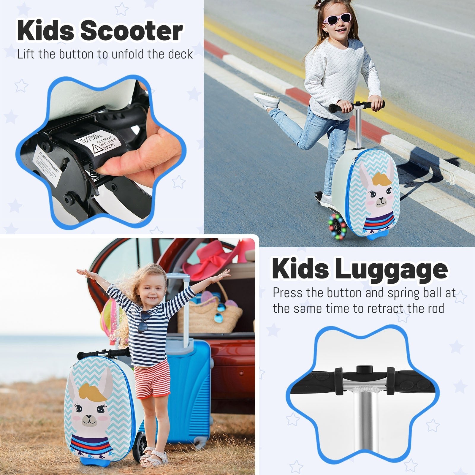2-in-1 Folding Kids Scooter with Suitcase and 3 Color Lighted Wheels-Light Blue Llama