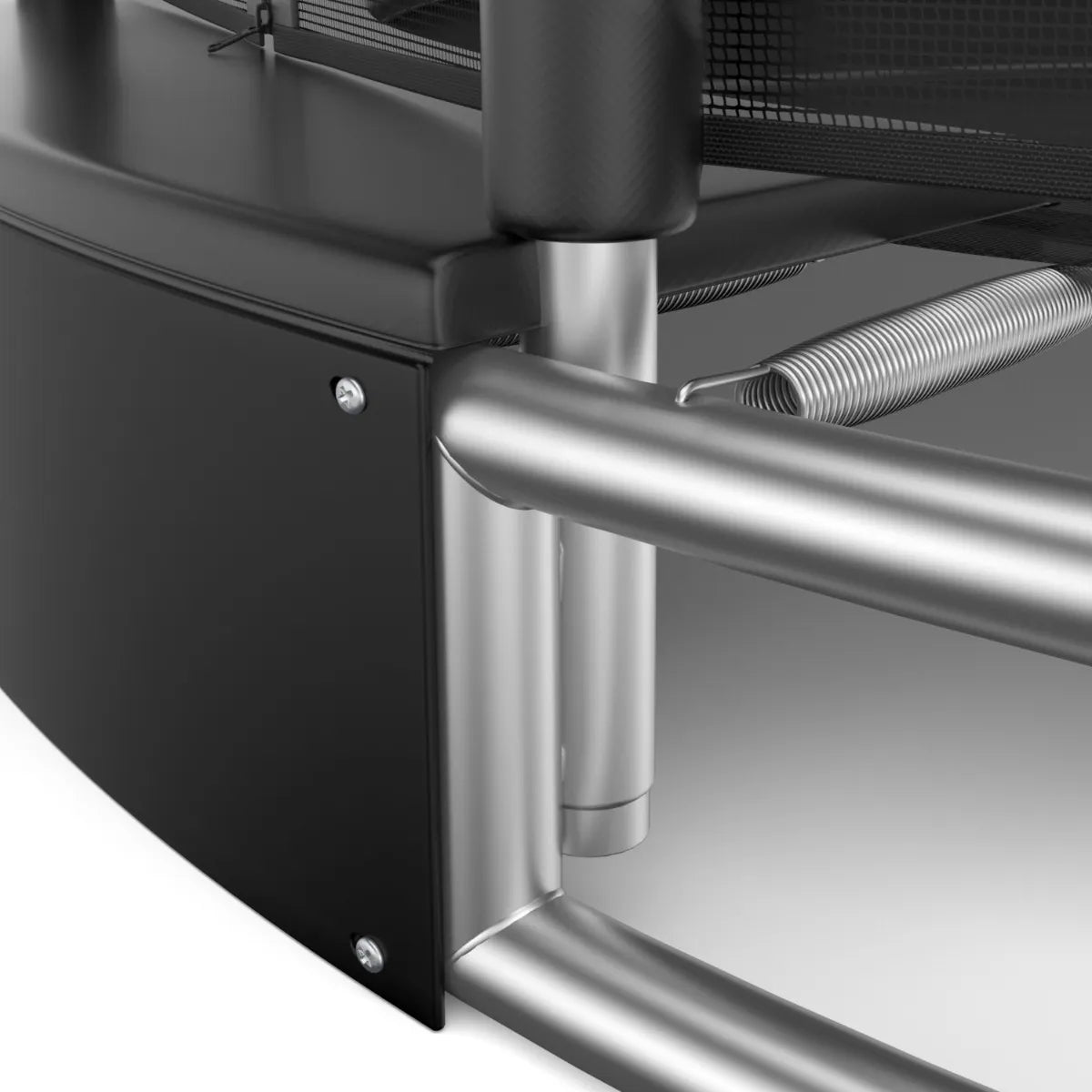 This trampoline features Akrobat’s AkroSpring Pro System which offers long-lasting elasticity, quiet operation and a powerful bounce with low impact on the body for maximum comfort.