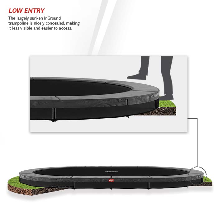 The Berg Grand Favorit Inground Trampoline is the favourite of families with young children. This superb Oval trampoline introduces you to that wonderful feeling of jumping, as if you could fly with the world at your feet. Who can get the highest? Who does the weirdest stunts? Whether you're young or an adult, the Favorit offers you years of safe jumping fun.