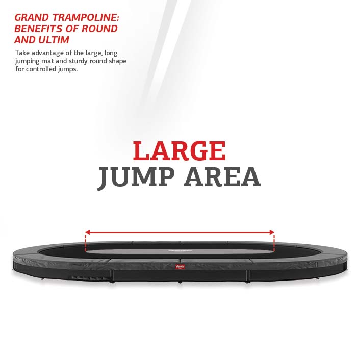The Berg Grand Favorit Regular Trampoline is the favourite of families with young children. This superb Oval trampoline introduces you to that wonderful feeling of jumping, as if you could fly with the world at your feet. Who can get the highest? Who does the weirdest stunts? Whether you're young or an adult, the Favorit offers you years of safe jumping fun.