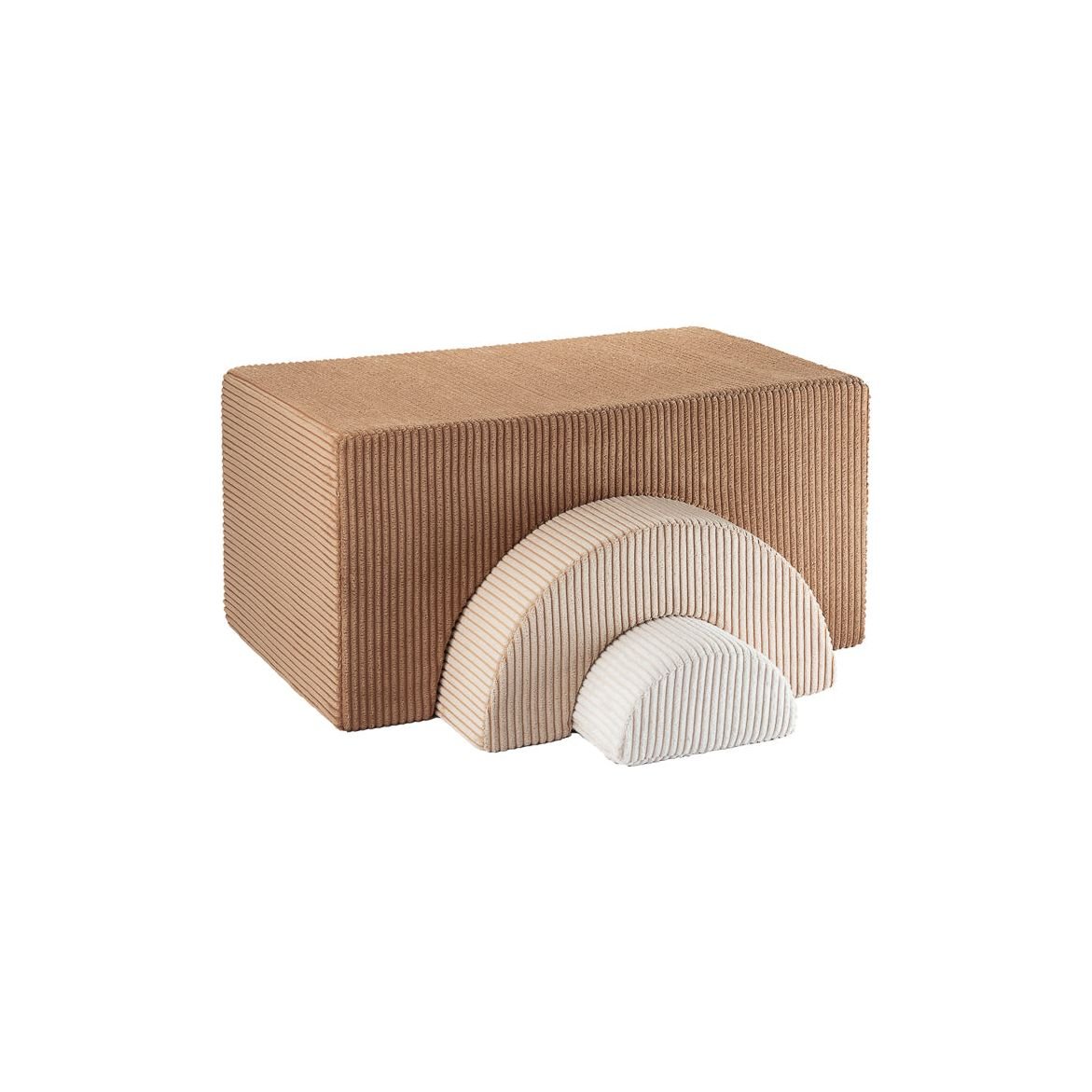 The product is made of high-quality OEKO-TEX® and GRS® certified wide wale corduroy that is produced from recycled PET bottles. Fabric contributes to high and effective product safety for children and delivers unforgettable tactile sensations to its little owner because of its luxurious texture.