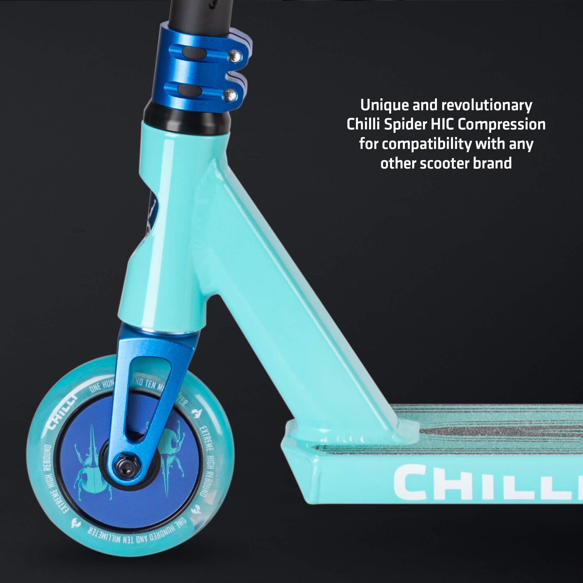 Critters are small creatures with extraordinary abilities - the most interesting inhabitants of planet Earth! They have served as inspiration for our new Chilli Pro Scooter CRITTER model. The CRITTER has the best technical features for stunts, tricks and flairs and impresses with two unique designs. The Hercules Beetle conveys the necessary power and strength to overcome riding limits. Finally, the wise Octopus impresses with its intelligence and is perfect for performance-mature riders who plan refined runs with professional strategic skills.