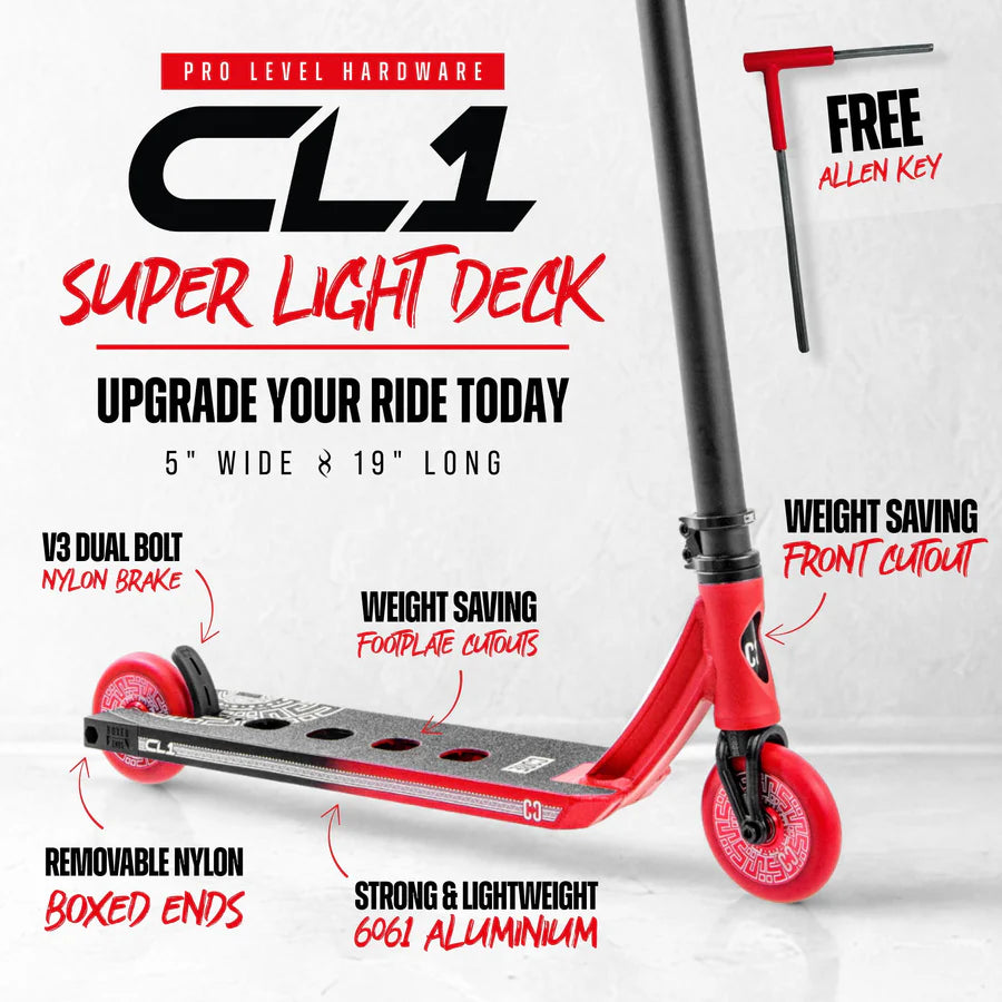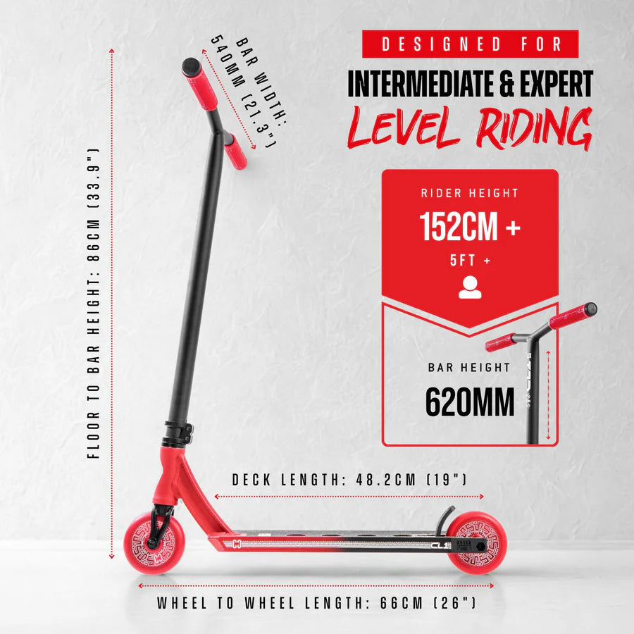 The CL1 is the prime option for anyone looking to upgrade to a Pro Scooter for a very reasonable price. Tested by our professional team, so you know it’s built to last and withstand the biggest and hardest tricks you can throw on it.