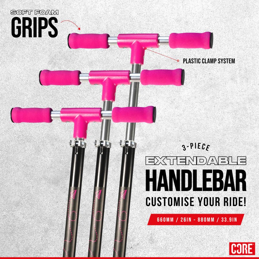 The CORE Kids Foldy Junior Kick Scooter is available in four stylish colours and designs to be loved by all. Putting smiles on everyone’s faces this is certainly the perfect introduction to two wheeled scooters. This scooter has been specially designed for kids and younger children. With the extendable bar height, this scooter will see you through from the age of 5 to their teenage years.