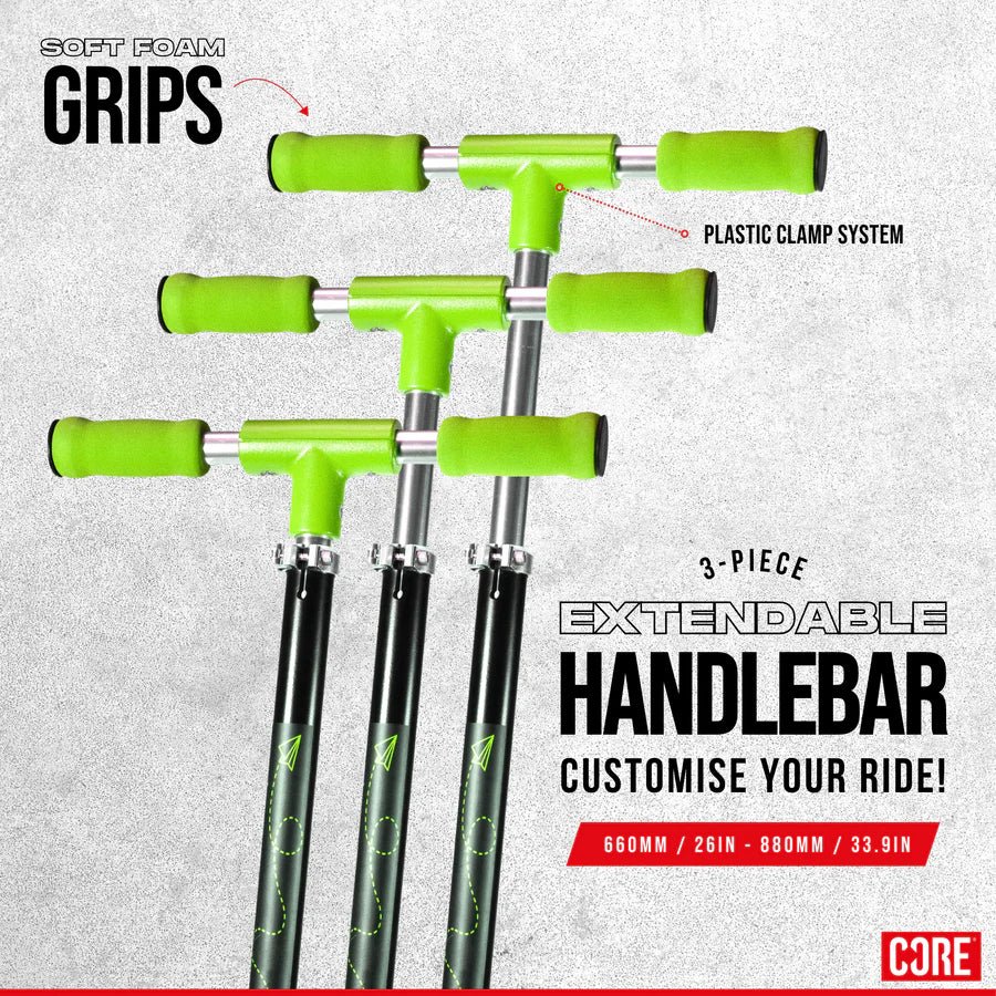Please note that the CORE Kids Foldy Junior Kick Scooter has been designed and engineered for strictly transport use and not tricks or stunts!