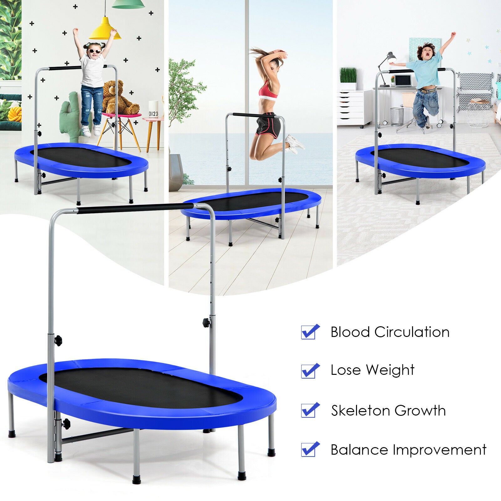 Double Foldable Fitness Trampoline with Adjustable Handrail-Blue