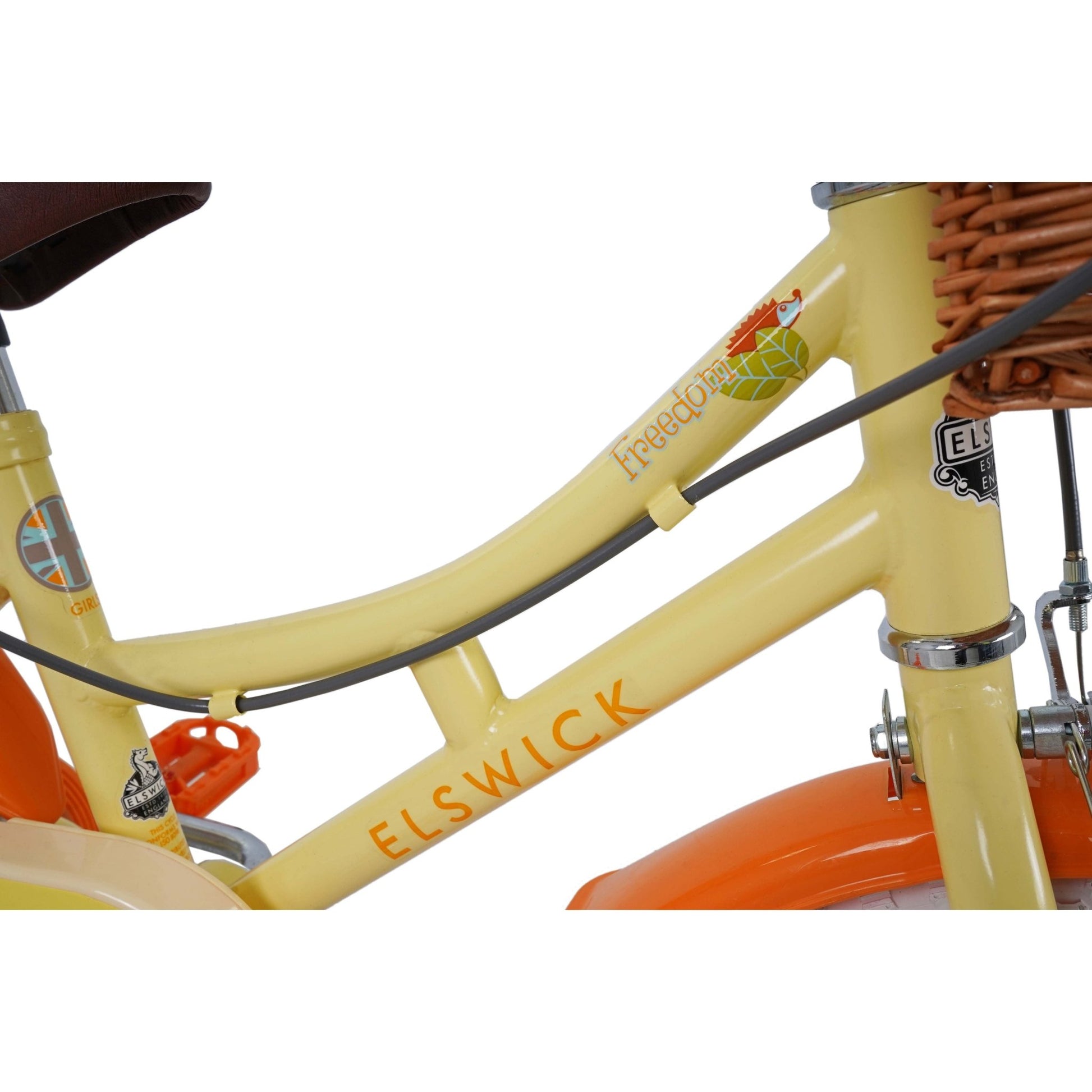 The Elswick Freedom is the perfect little heritage style bike, with a beautiful low step through frame and the ever essential front basket to bring along that special dolly on a race to the park. The frame is finished in a beautiful satin lacquer that puts other garish children bike to shame. Front and rear mudguards protect your little one from dirt thrown up from the pavement, whilst the matching fully enclosed chain-guard provides protection from the chain. The bike is fitted with ball bearings throughout to make pedaling and steering as easy as possible, and for little ones who are just learning to ride, it has sturdy stabilisers too.