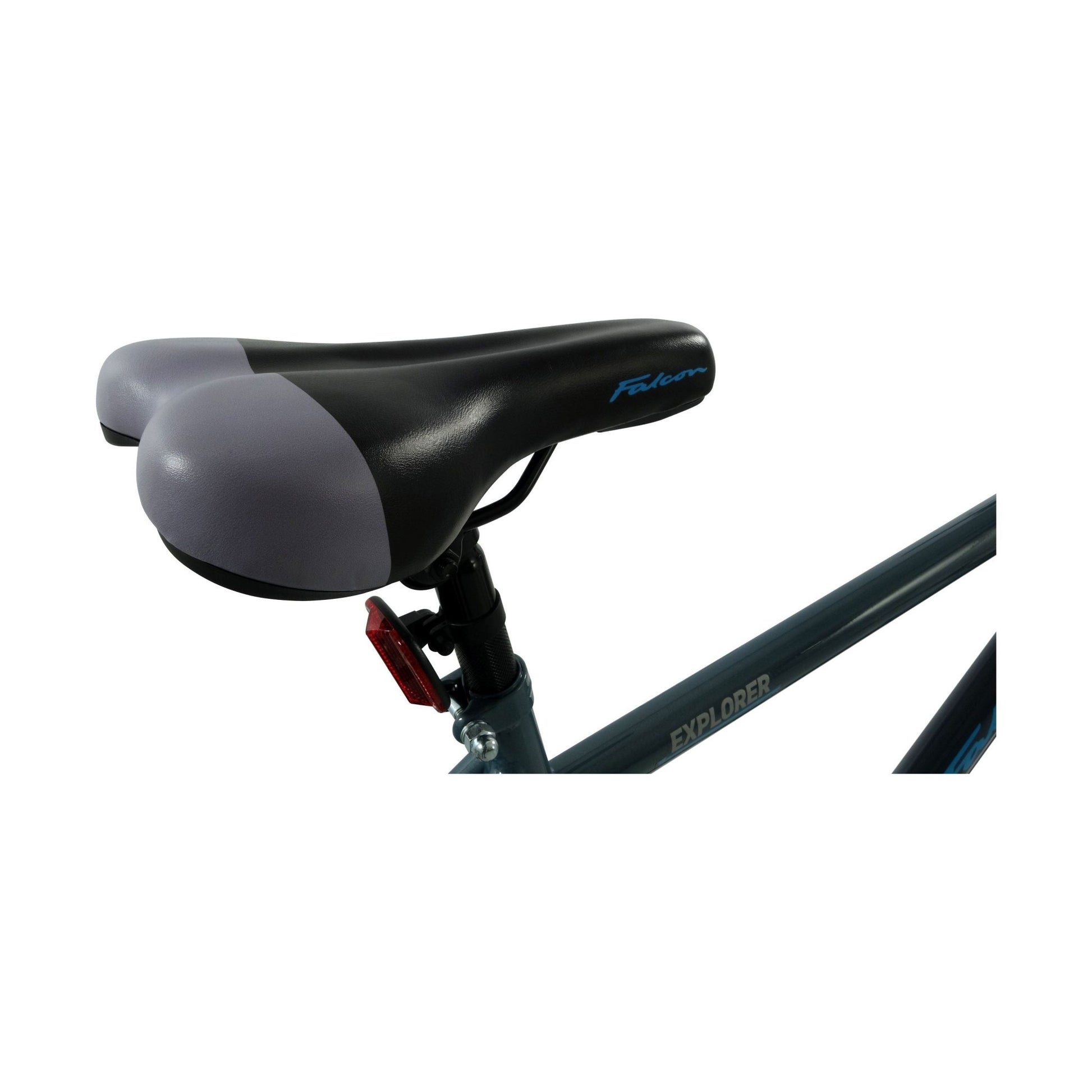 Front and rear mudguards add protection from the elements and thanks to the PET acrylic construction they are resistant to knock and bangs. The Explorer has been designed with comfort in mind, thanks to the padded Falcon branded saddle and soft-compound handlebar grips. The heavy duty rear steel rear luggage rack adds extra versatility and makes long rides much more comfortable than if wearing a back pack.