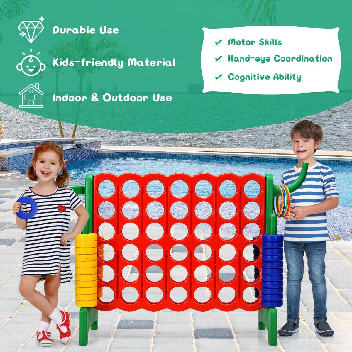 Perfect Gift for Kids: This colorful giant game toy is the perfect gift for children. Whether it's a holiday or birthday, this 4-in-a-row game set is always a surprise and will keep them entertained for hours. The rules are very simple and children can learn them quickly. Besides, through this game, children's motor skills, hand-eye coordination and cognitive skills can be greatly improved.