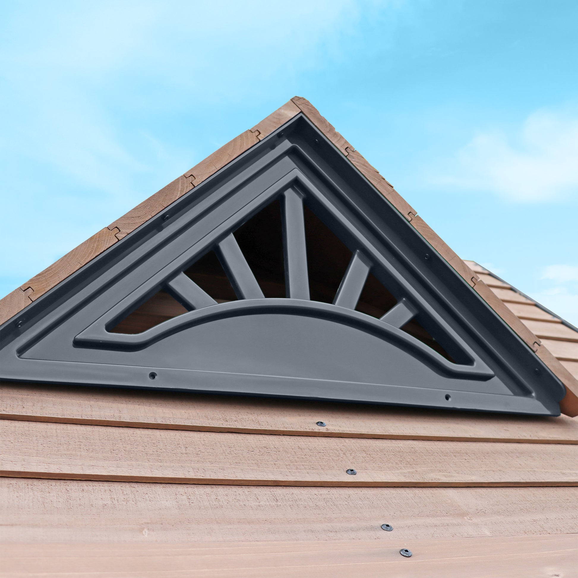 - Pre-cut, pre-drilled and pre-stain in a beautiful mocha brown stain colour with charcoal grey roof accents