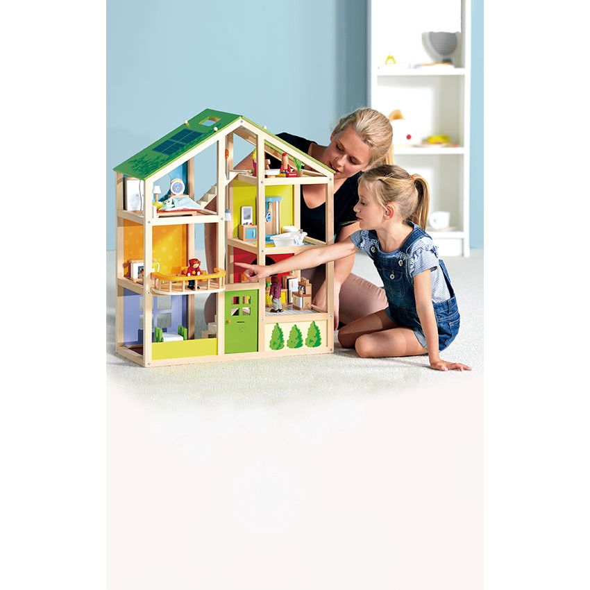 - 3-STOREY FUN: This house comprises three storeys and six rooms, including a kitchen, living room, bathroom, three bedrooms and two sets of moveable stairs.