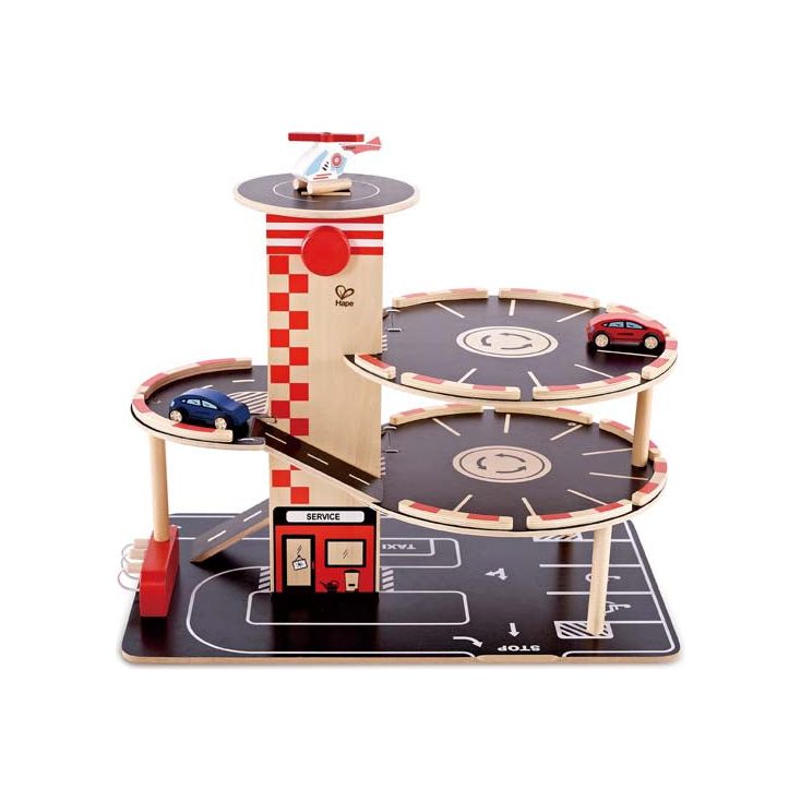 Fill up with multi-level fun. The Hape Park & Go Garage makes an ideal special occasion gift for kids and will encourage hours of role-playing, on their own or with friends. The car toy set is bursting with play options: drive and park the toy cars around the different parking levels, recharge them after their long journeys, whizz them up and down the lift, or even fly off with the toy helicopter.
