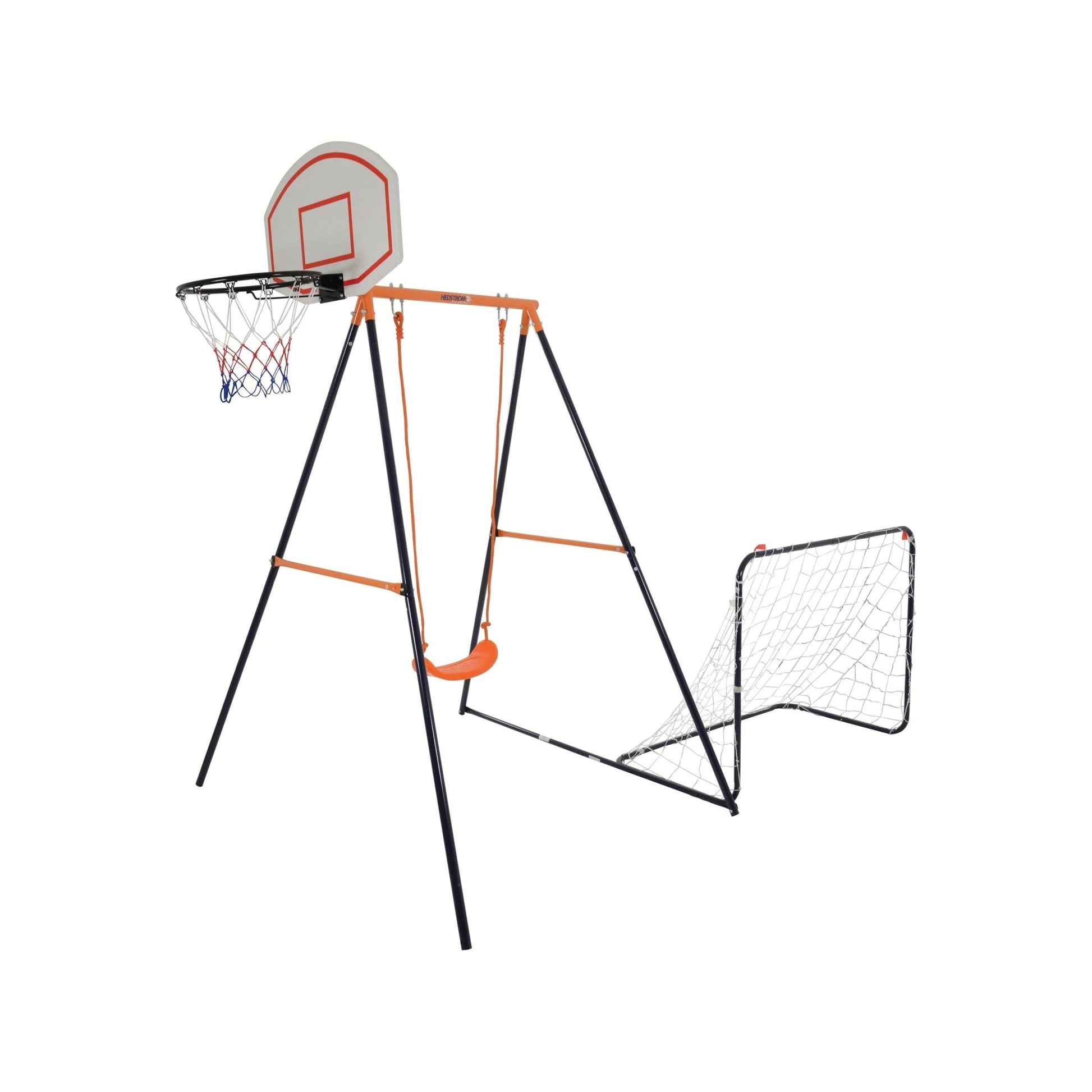 - SWING INTO ACTION: Come out to play on Hedstrom Triton Multi-play! Featuring a single swing, basketball hoop and football goal.