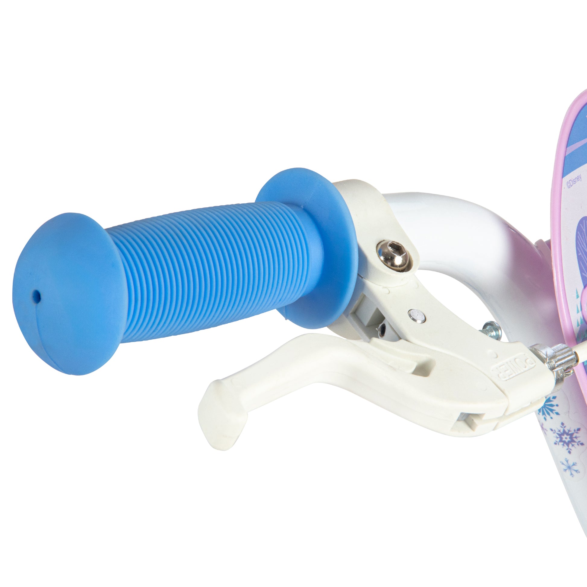 This kid’s bike features Disney Frozen’s Elsa and Anna on the handlebar plaque, frame, and fully enclosed chainguard, giving this bike a striking wintry look! This bike comes equipped with fenders, a bell, and front and rear hand brake to ensure the bike is not only fun, but functional and safe!