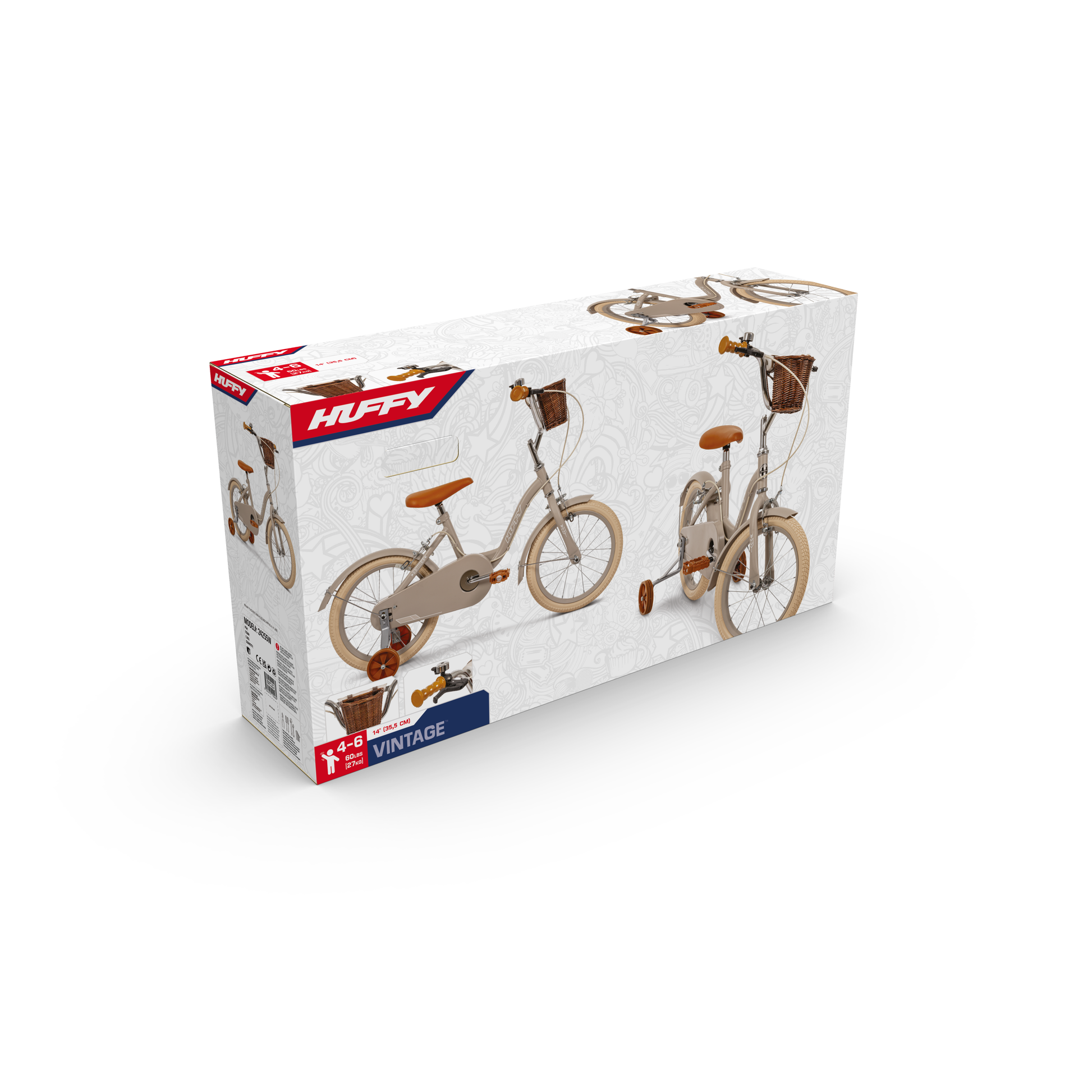 This Huffy Vintage 14-inch Matte Grey Bike is equipped with front and rear steel sidepull caliper brakes and removable stabilisers, your child stays in control as she rides. The padded saddle and soft grips keep little ones comfortable, while parents can appreciate the safety of the stabilisers and fully enclosed chainguard. This adorable bike also features a front basket to store toys or other goodies, and the fenders keep your rider clean and dry. Take a cruise on this classic from Huffy!