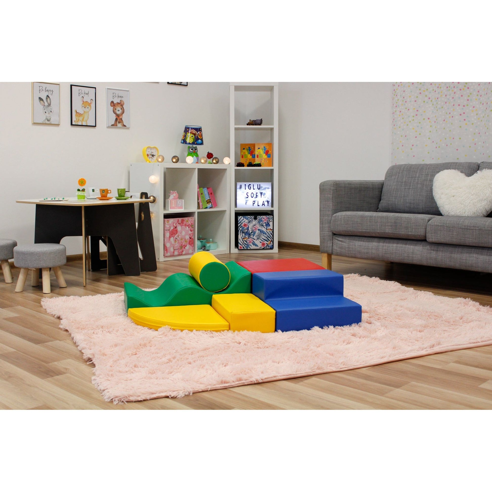 IGLU Soft blocks are made of firm, 100% recyclable high-quality foam with a closed cell structure – soft & super light. Covered with a tough artificial eco-leather. Shapes are robust, pleasant to the touch, easy to care for, retain shape well, and tested for harmful substances.