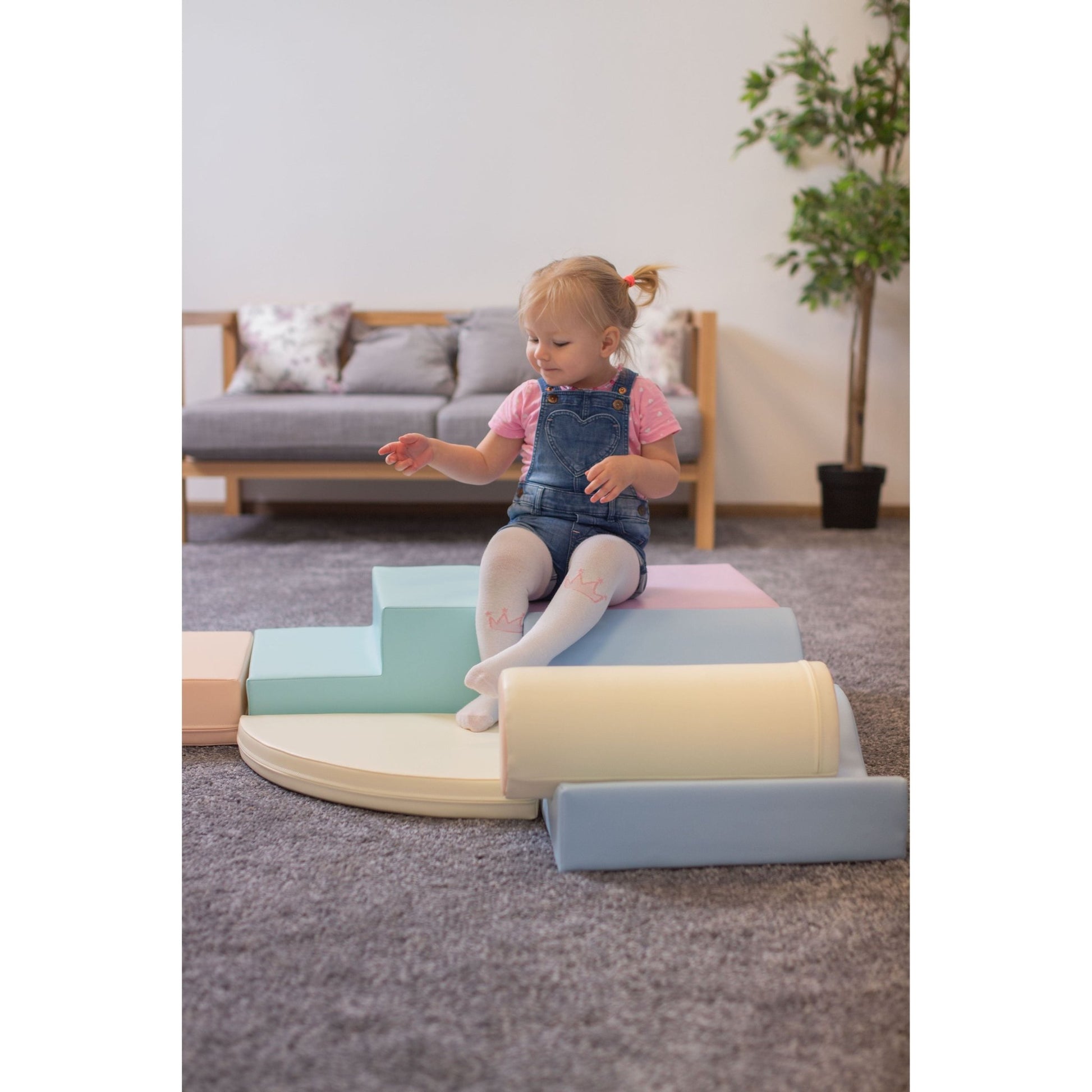 This set includes various soft play shapes, including ramps, and corners. Toddlers can assemble them to create exciting structures that promote motor skills and problem-solving - perfect for a Montessori toy. Whether it's an expedition through hidden caves, a journey through a magical forest, or simply a cozy hideaway, this playset inspires imaginative storytelling and role-play.