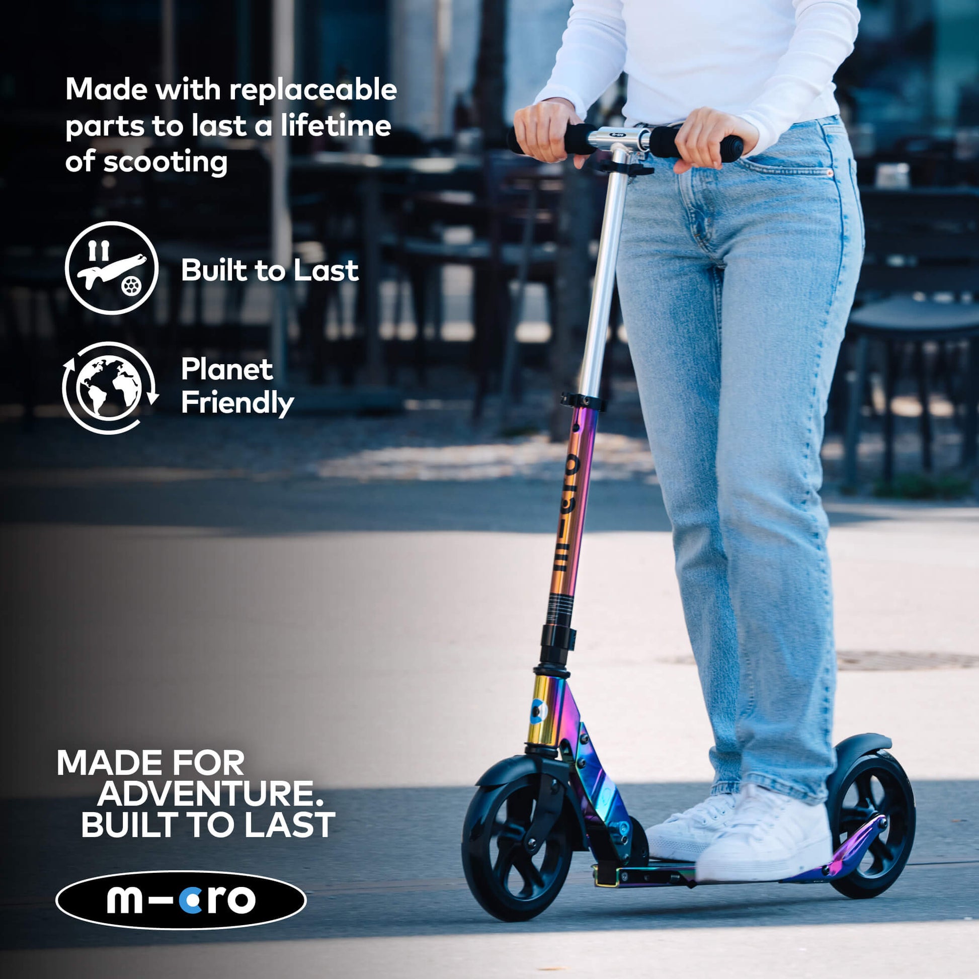 With adjustable handlebars for a tailored scooting position. Seamless one-click fold for easy storage or transportation. And handy kickstand for independent standing. The Micro Classic is a fantastic everyday scooter to make A-B journeys quick, fun and fuss-free.