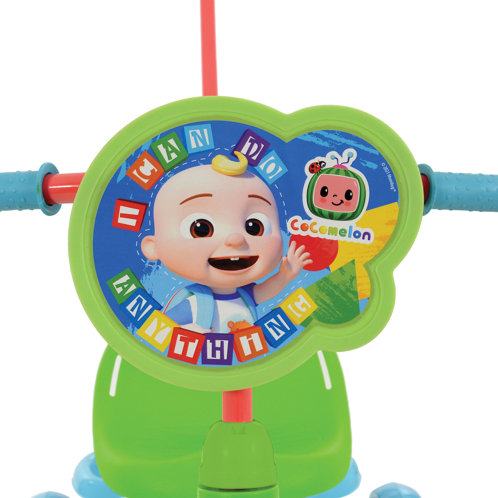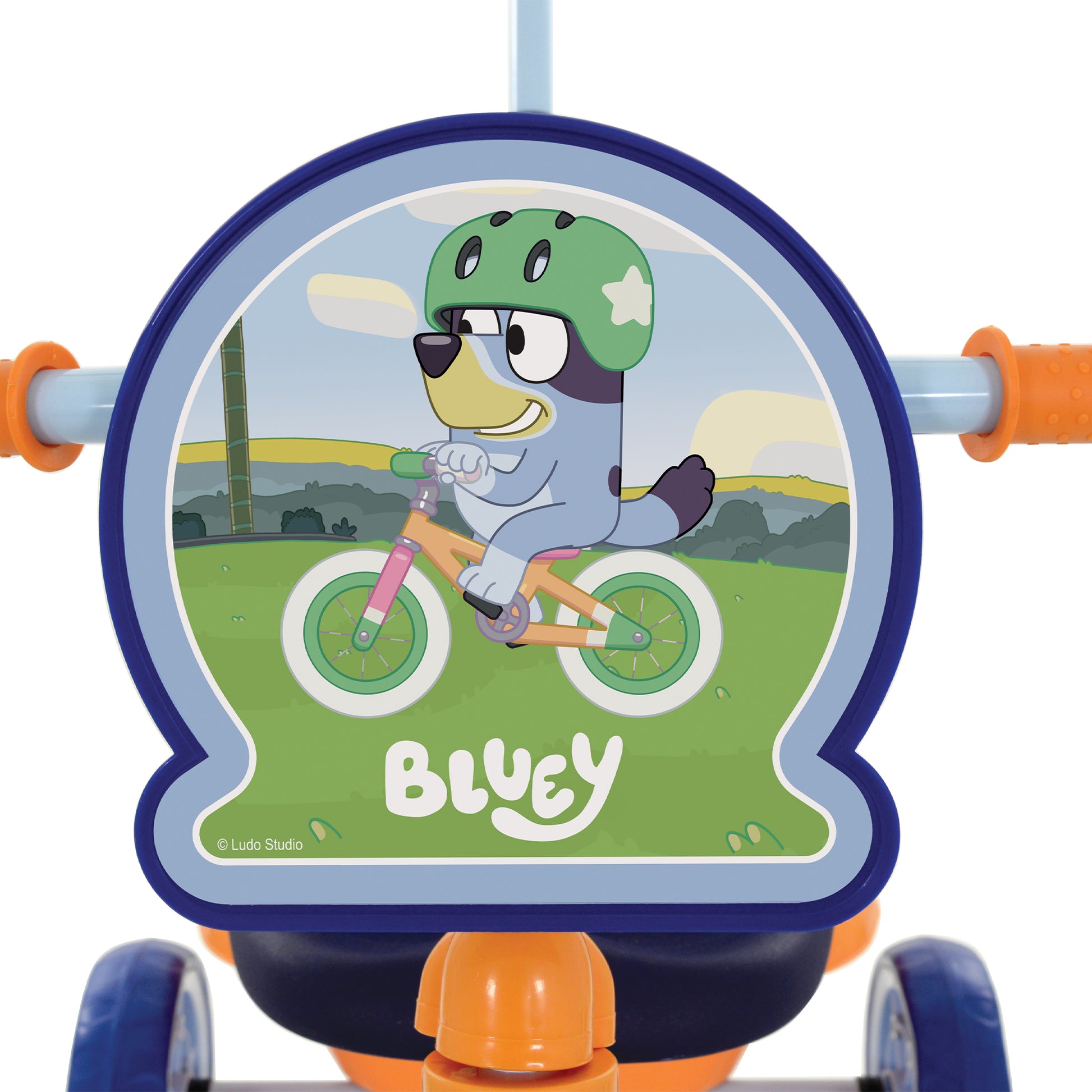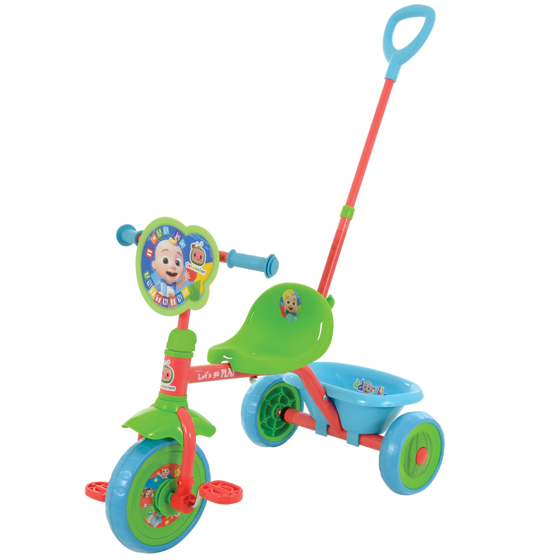 Get on the move with this super cool trike featuring character favourites! Perfect for little ones finding their feet, this ride-on is not only designed for comfort with it's moulded seat and soft handlebar grips, but safety also with wide, puncture-proof EVA tyres for stability and sturdy steel frame. A front mudguard prevents riders from getting too messy and protects from debris. The easy switch front wheel clutch mechanism allows kids to rest their feet on the pedals in parent push-along mode, whilst using the adjustable parent handle. The handle can be removed and pedals engaged once your child is ready to go it alone, improving confidence and coordination. Can be adjusted to growing children as confidence and ability improves with adjustable handlebar height of 50-53cm and a seat height of 32cm. The removable rear bucket is great for ride-along storage for all your favourites toys!- Depth: 44 CM