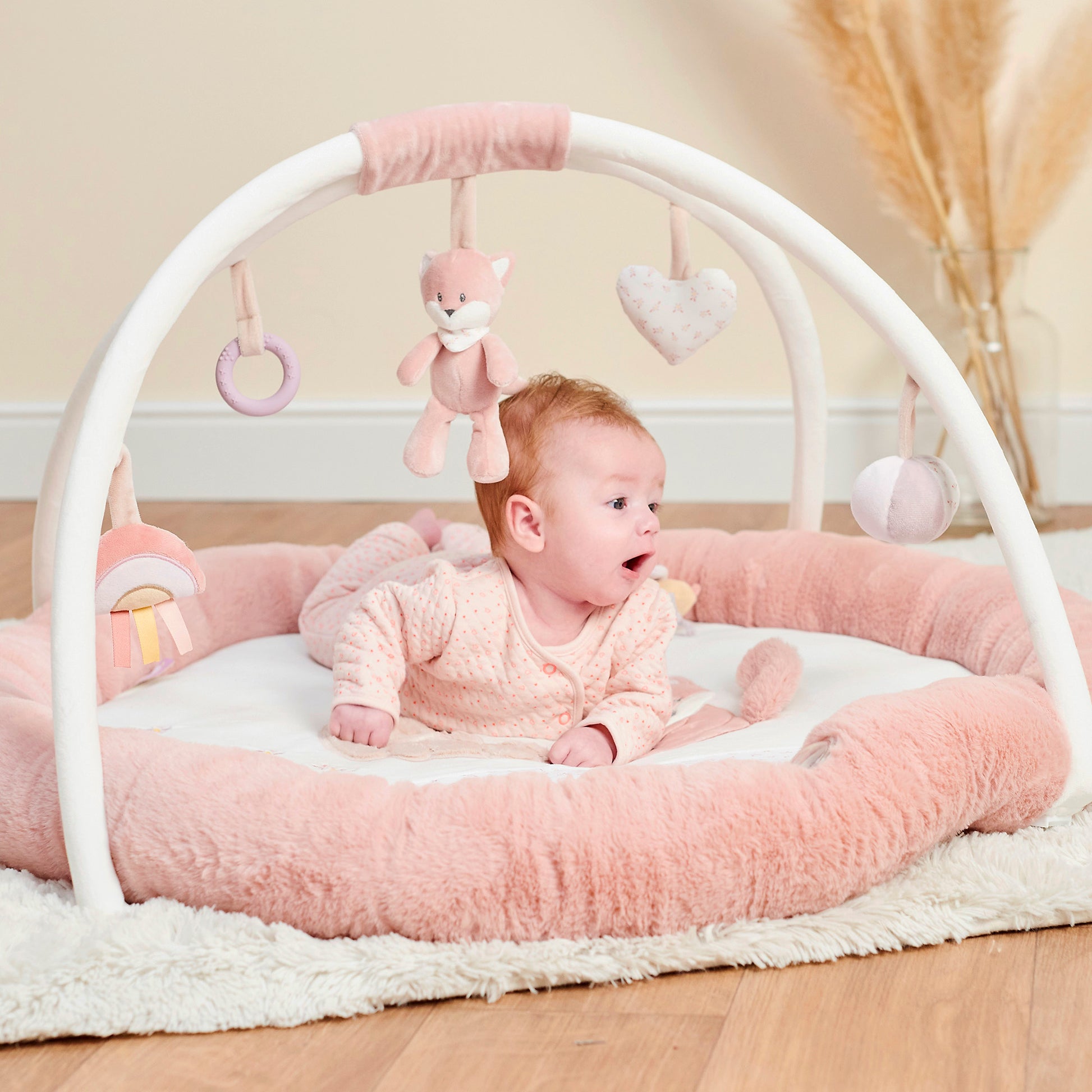 - Playmat with various noises and textures (including detachable overhead toys)