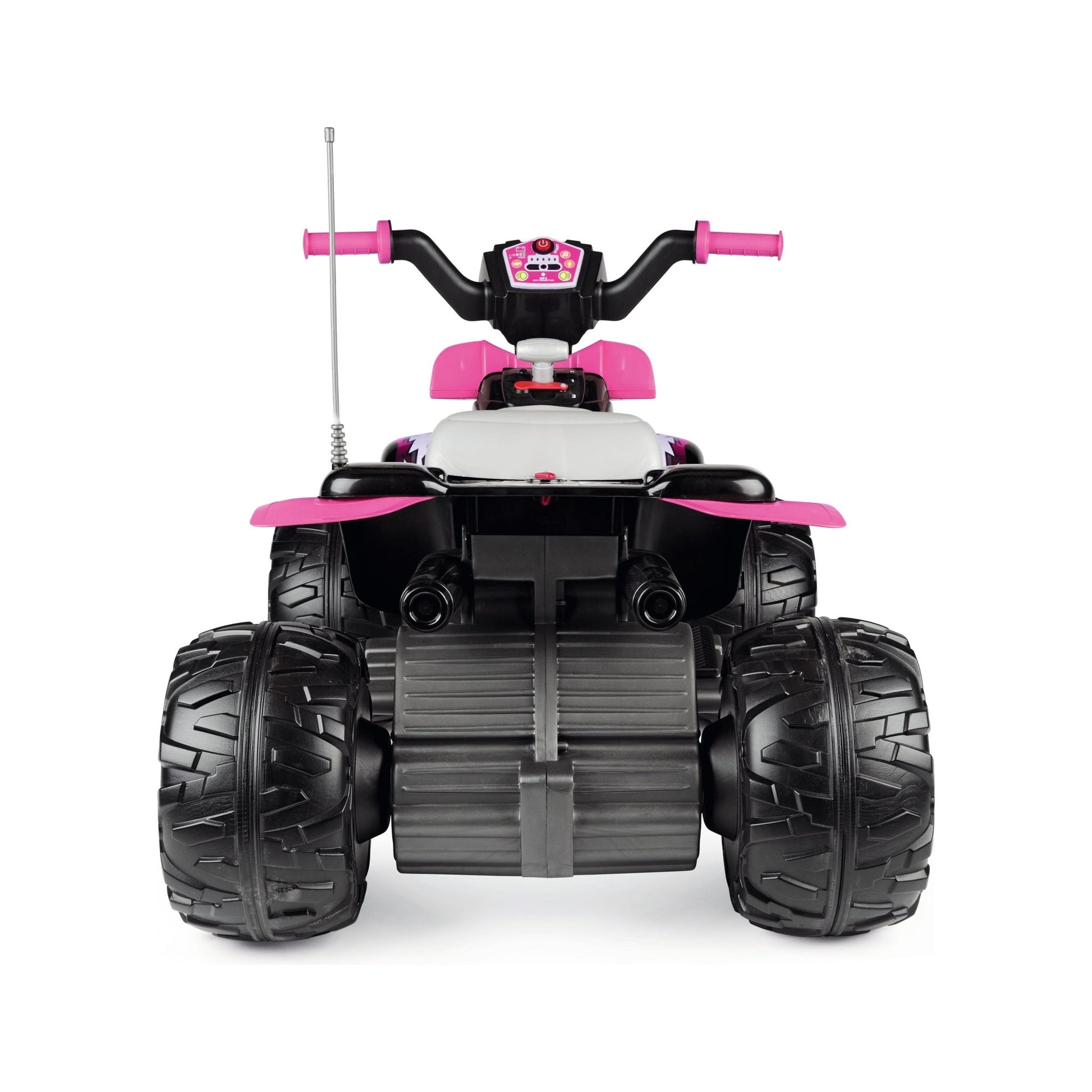 The gutsy electric quad for children with lights and sounds. Corral T-Rex 330W/Pink is the iconic Peg Perego quad, always ready for new adventures. AlI-Italian quality and high-performing characteristics such as lights, sounds, tunes and a horn, for great fun from the age of 3. The electric quad operates with a 12V/8Ah/100 Wh rechargeable battery.