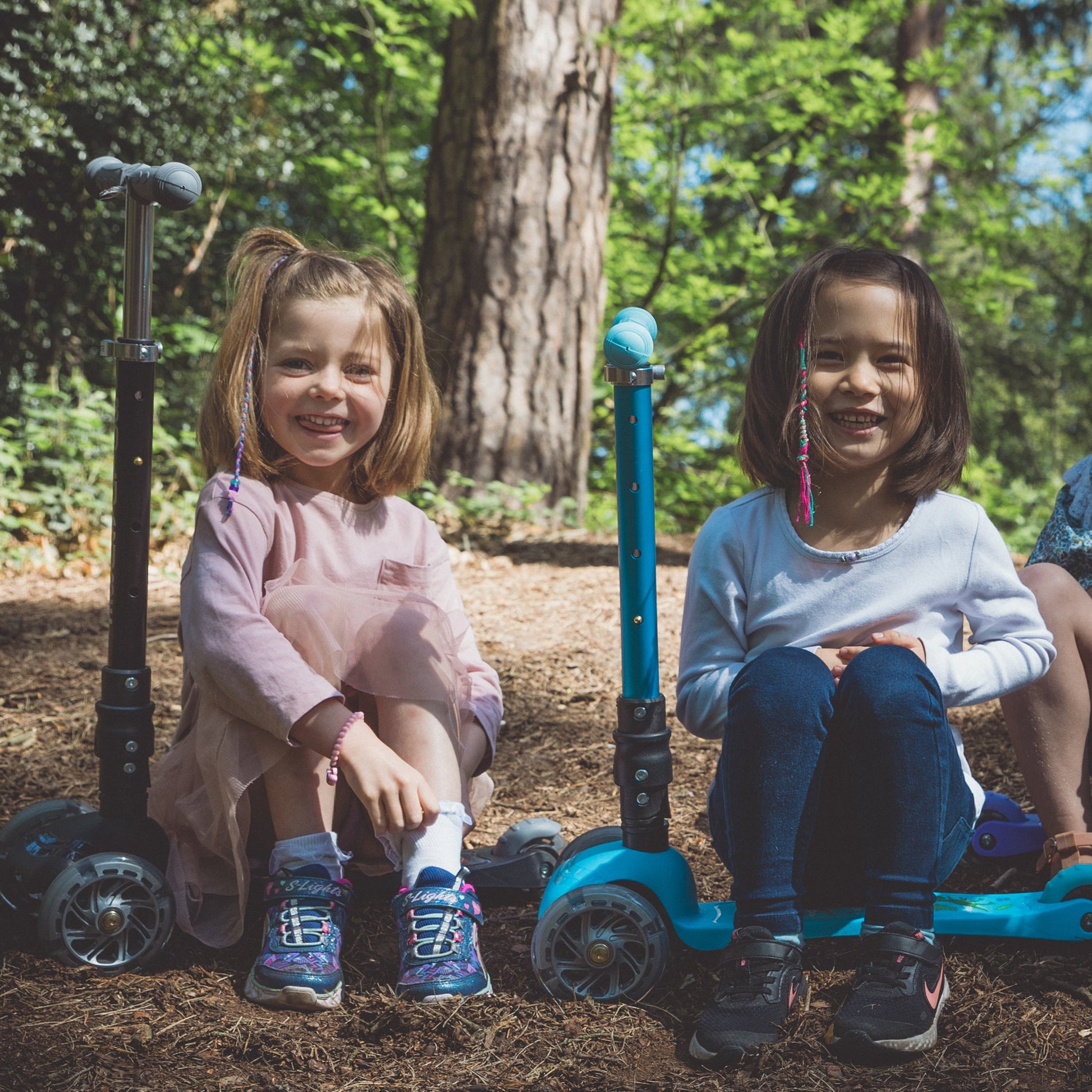 Our Teeny Fold 3 Wheel Scooter is designed miniature for your little teeny rider. Whether you need to commute in style or to have fun outdoors, this is the perfect scooter for children 2 years and older. The lean to steer aspect of this scooter continues to nurture balance and stability in budding young kids. Featuring bright flashing lights (on front & rear) and a tough stomp brake, this self balancing 3 wheel scooter stands out from the crowd without compromising on safety, functionality or style.