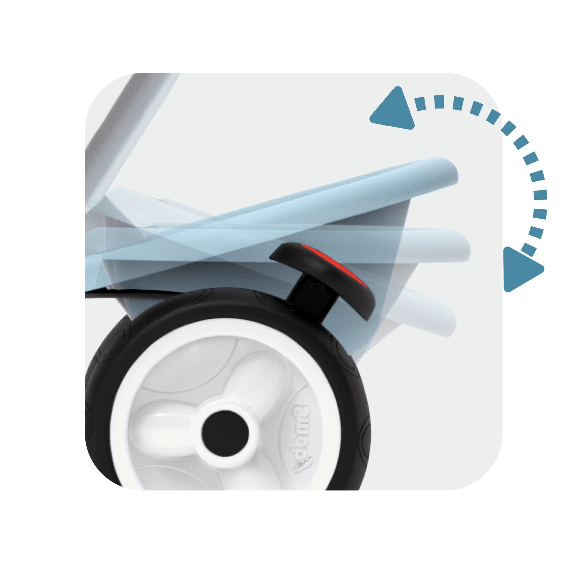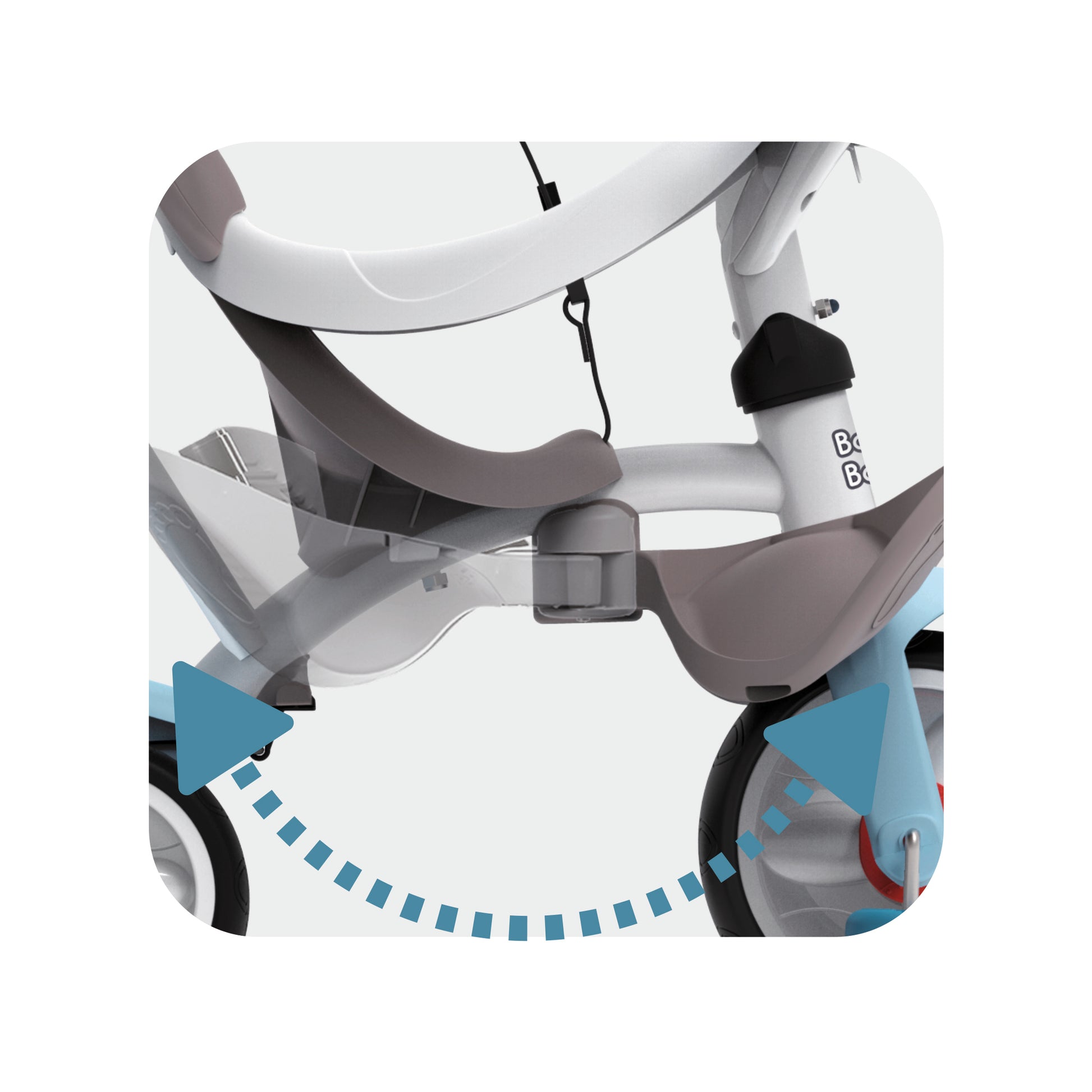 The Baby Balade combines safety, comfort and fun in one versatile travel solution making it ideal for all your walks! Even when you have your hands full, the intuitive adjustable steering handle allows you to guide the tricycle with light pressure. A safety harness and retractable footrests are included for additional security. A freewheel system is in place to prevent the pedals from turning, along with steering locking to prevnt interference, when the parent is pushing.