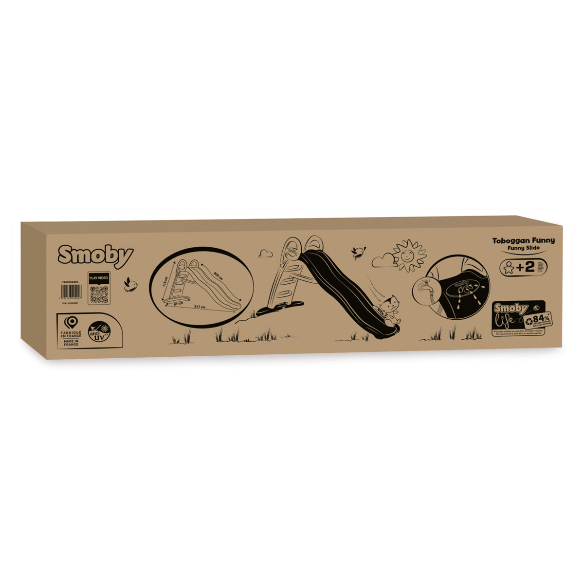 The Smoby Life Funny Slide will undoubtedly please your children! With a blowmoulded double wavy slide with a length of 2m, your little ones will spend whole days having fun and laughing! Fitted with an extra-wide base which offers very good stability, and a ladder equipped with ergonomic handles and non-skid steps, the Funny slide enables you to have no worries about safety! During hot and sunny days, join a hose under the slide to create a waterfall and cool your children! This toboggan will stay years in your garden thanks to its anti-UV treatment which enables it to remain sturdy and to keep its pretty colours over time.
