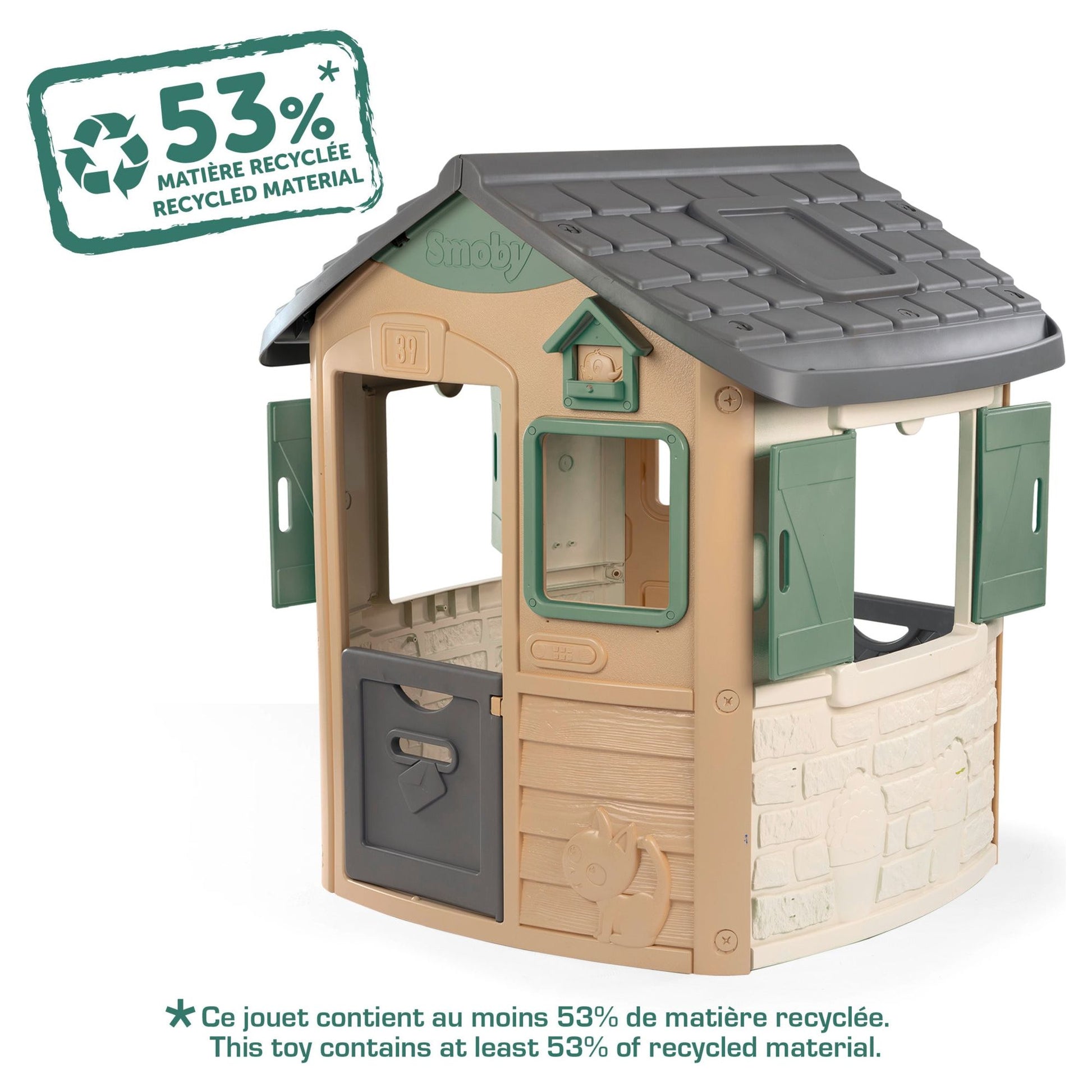 This house has been specially designed so that you can add the accessories you want, all available to buy separately. You can then create THE house that best suits your little ones! The Jura Lodge is treated with an anti-UV treatment for good resistance and colourfastness over time, so it can remain in your garden for years to come. The house is made in France and contains 53% recycled plastic.
