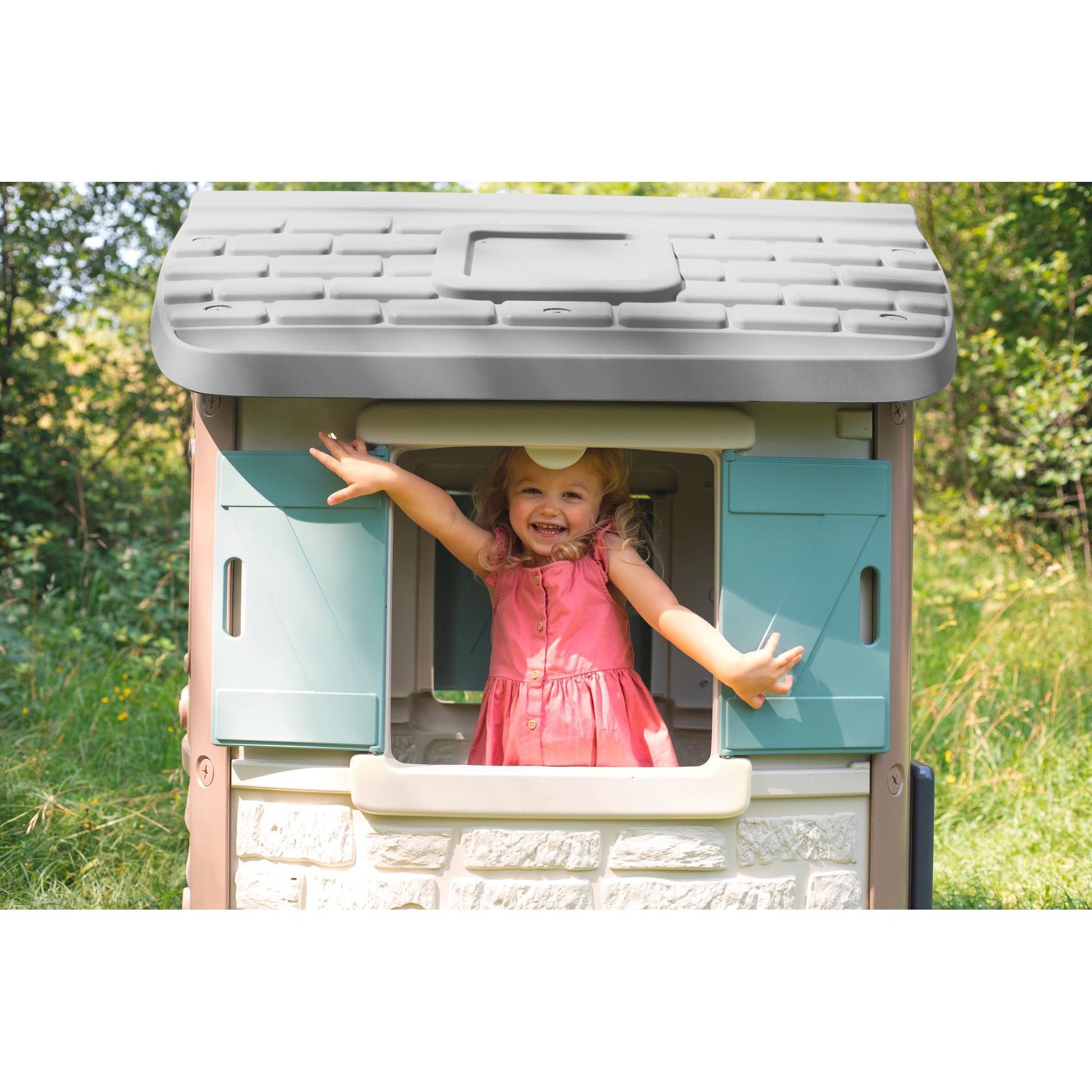 • The Smoby Life Jura Lodge features 2 gates and 2 windows with shutters