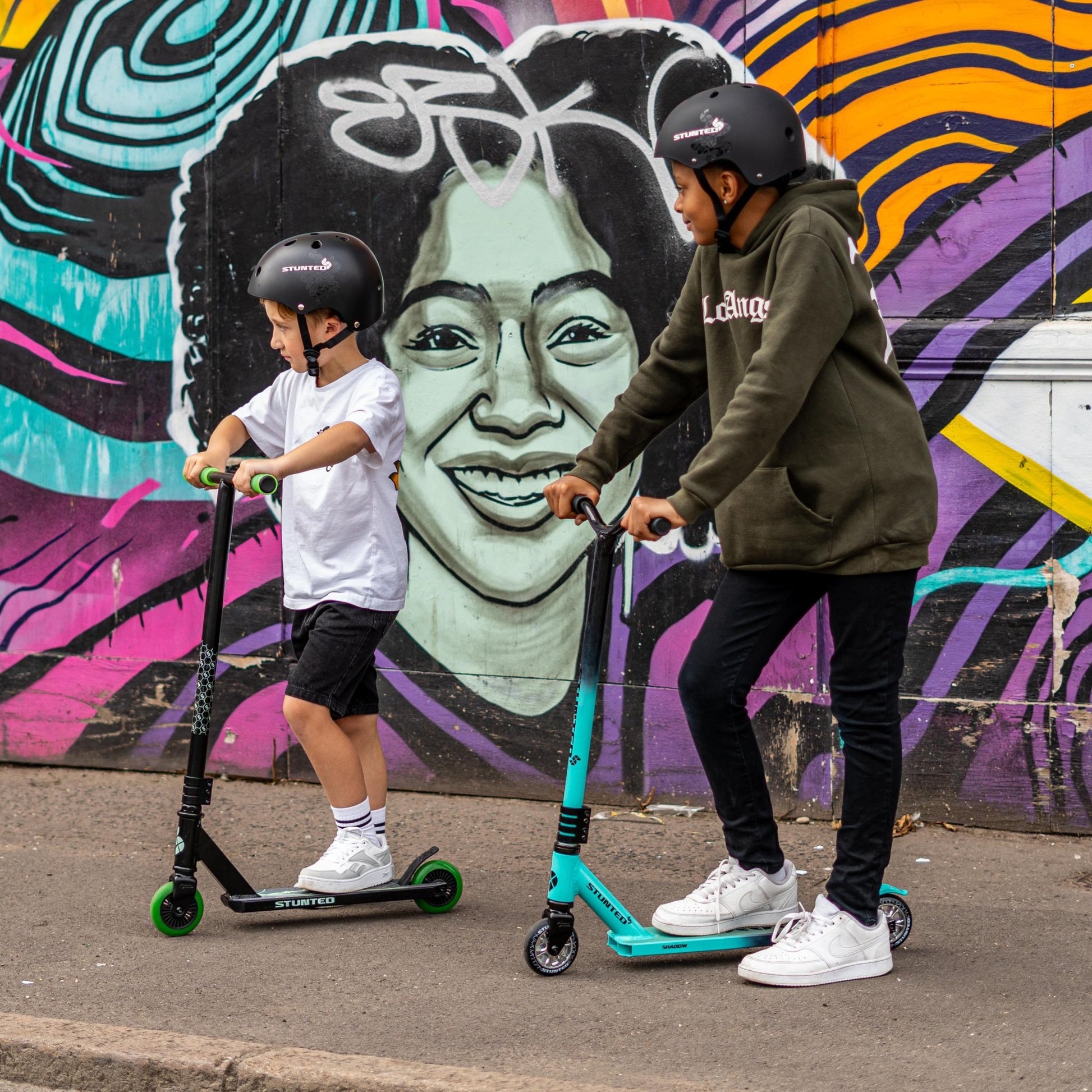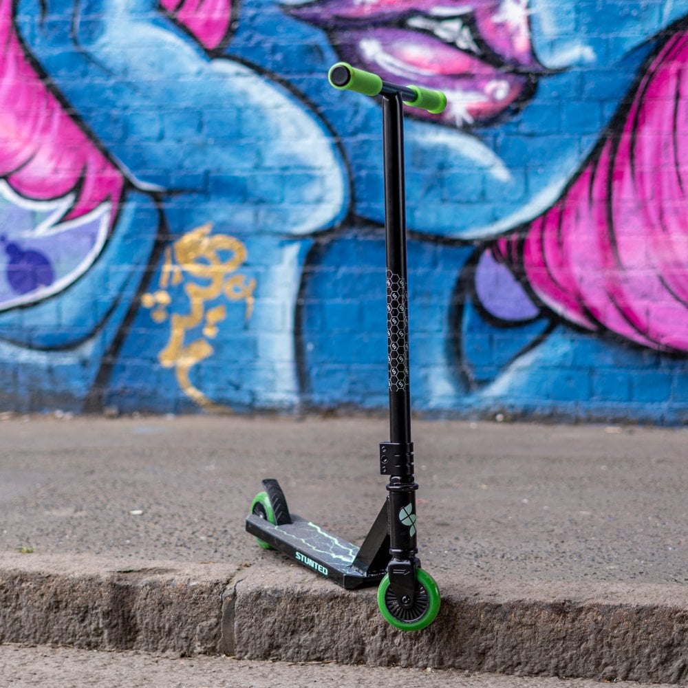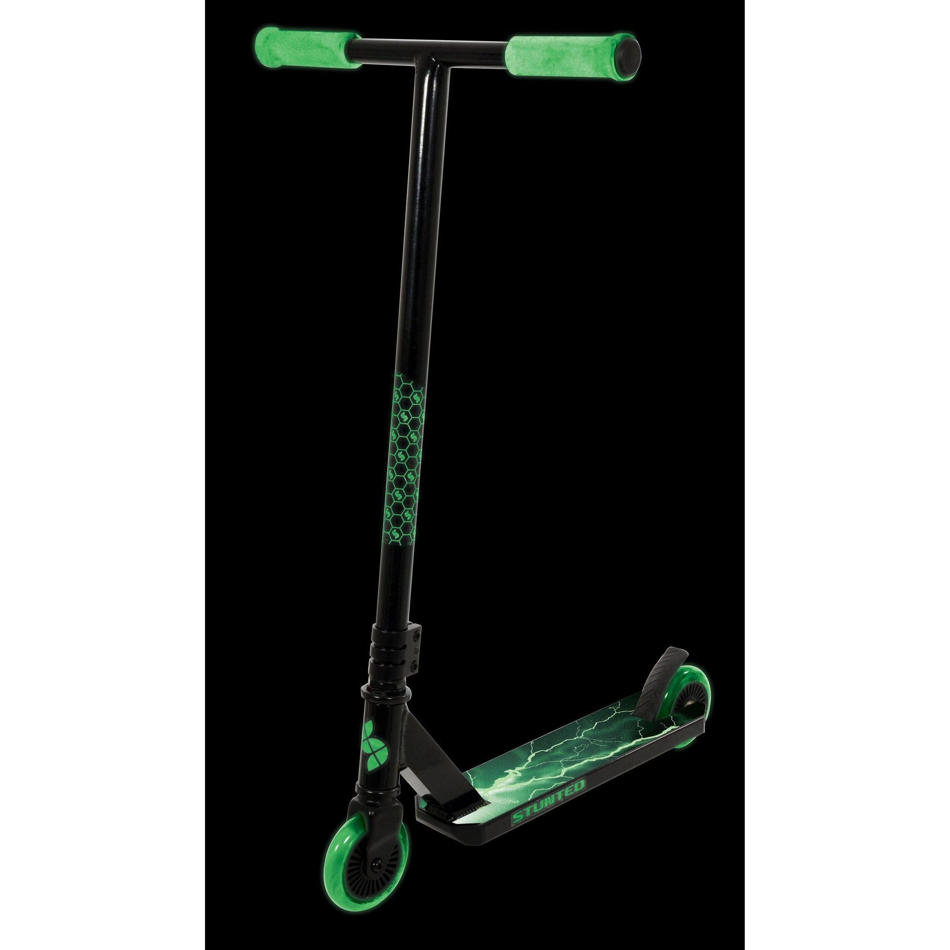 Enter the world of stunt scootering with the Stunted Glowstorm Pro - glow in the dark stunt scooter! Featuring black matte finish and contrasting glow in the dark elements, this scooter is sure to stand out! This scooter is ideal for beginner riders and up and is flush with features to ensure the best ride with the highest quality!