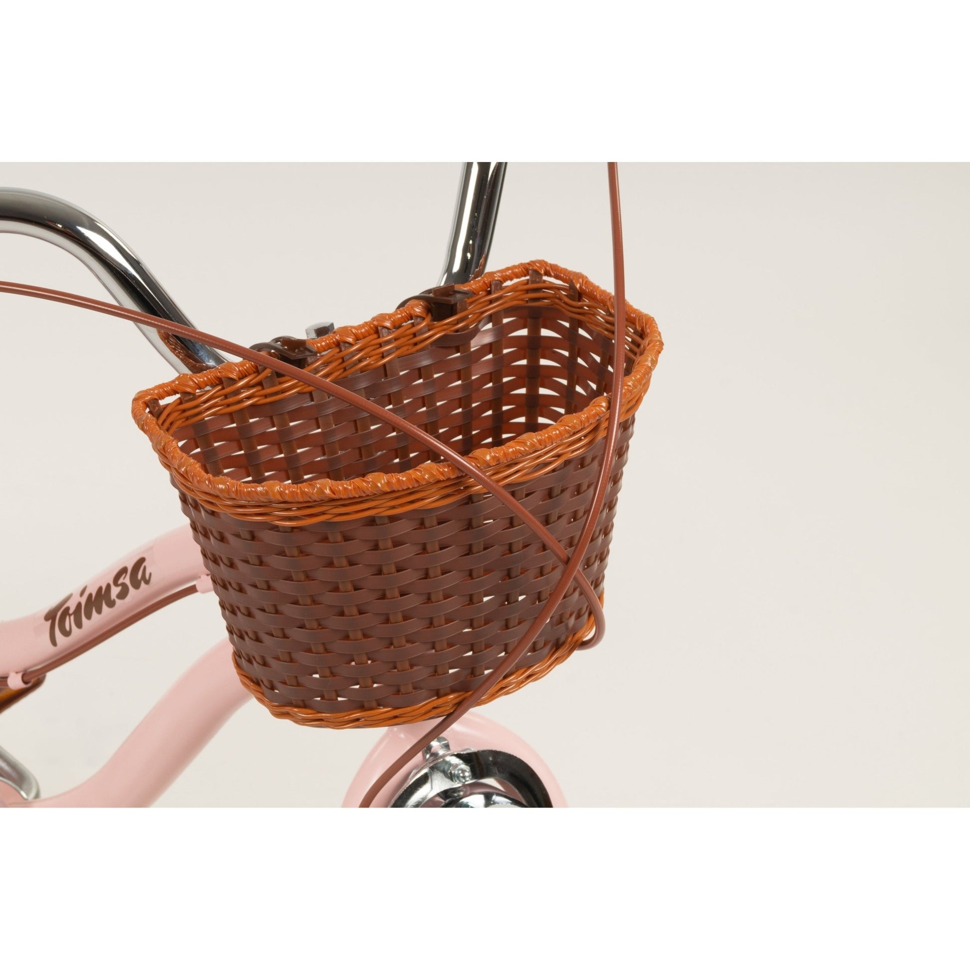 This retro inspired 16" vintage bicycle in beige or pink comes with a front and rear calliper brakes. it features pneumatic tyres with spoked wheels and chrome mudguards and also has removable stabilisers. This 16” bicycle also comes with an adjustable sprung saddle and handlebars and also comes with a rear carrier rack and a front wicker style basket to complete the retro look.