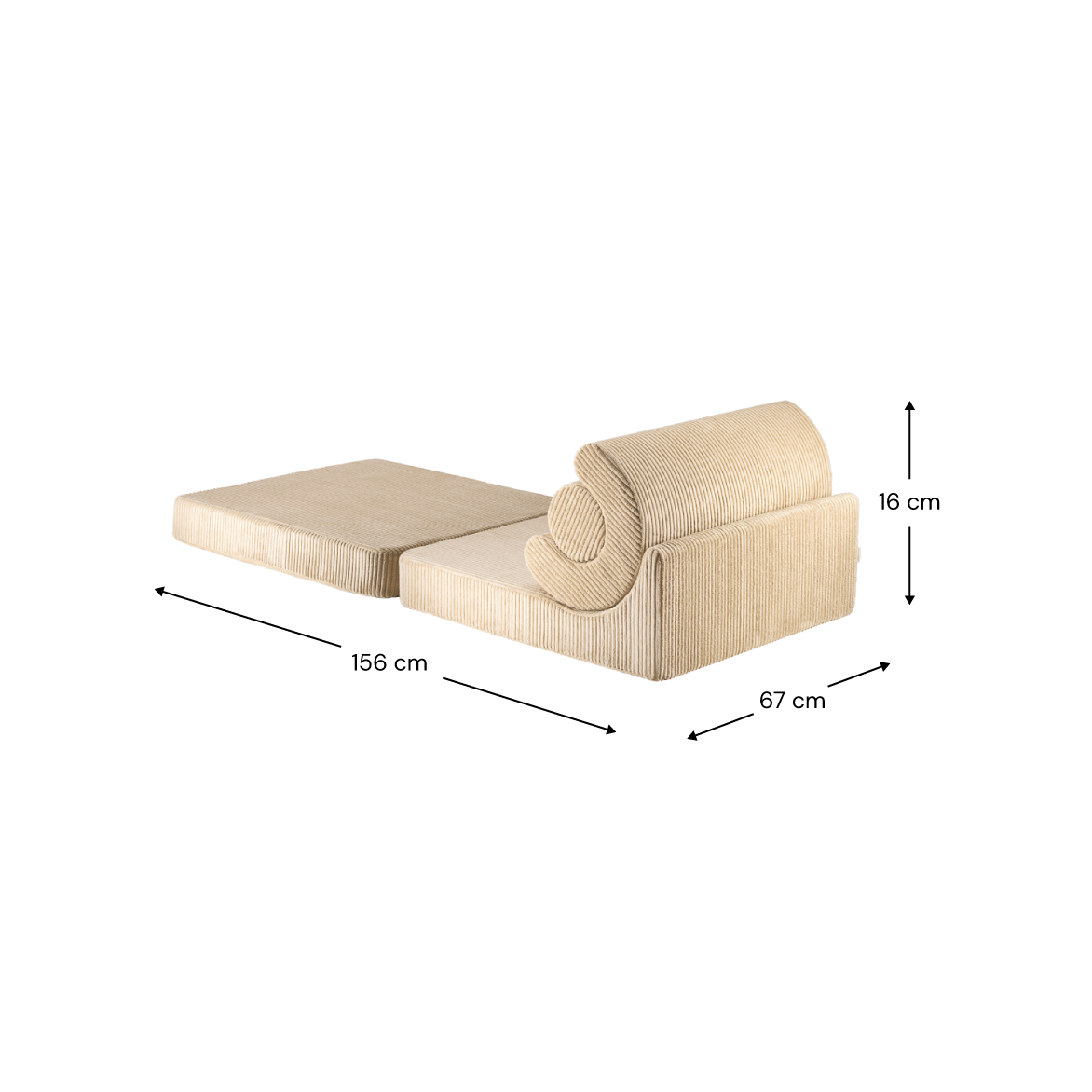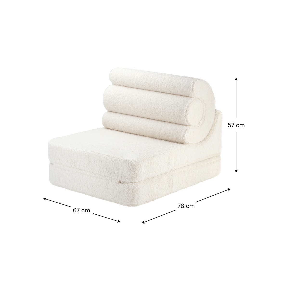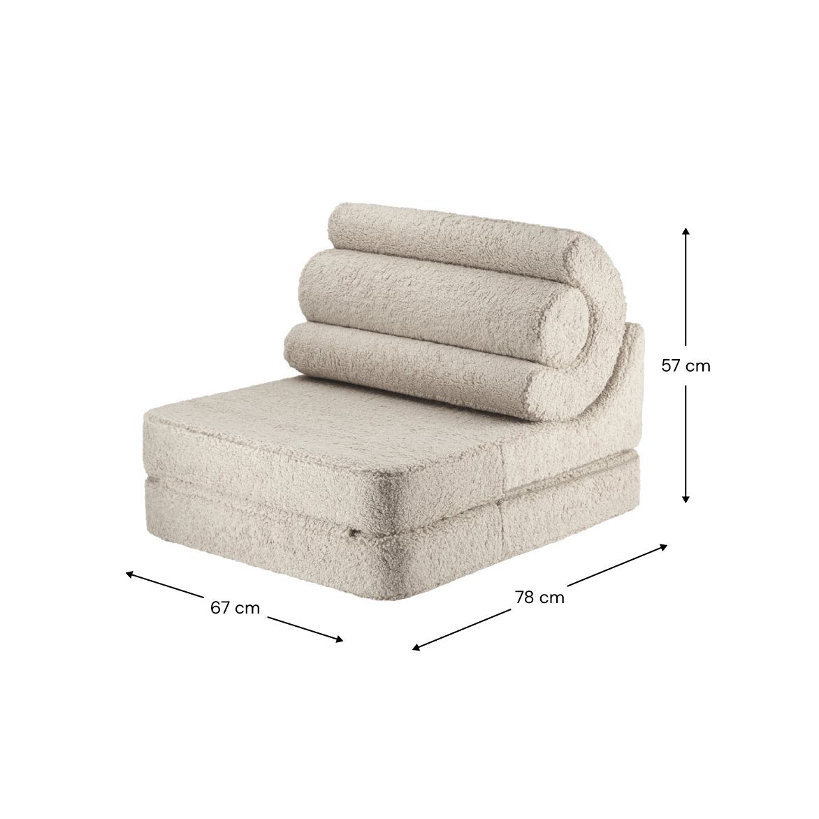 The Wigiwama Flipster Chair is an upgraded version of the Flip Chair. Now bigger, more functional, and suitable for both kids and adults it is a stylish and practical addition to the kid’s room. The product is designed in a special way so that it can be easily transformed into a sleepover mattress and then back into a flip chair. The product is made from high-quality Corduroy or Teddy Boucle fabric that delivers unforgettable tactile sensations to its little owner because of its luxurious texture.