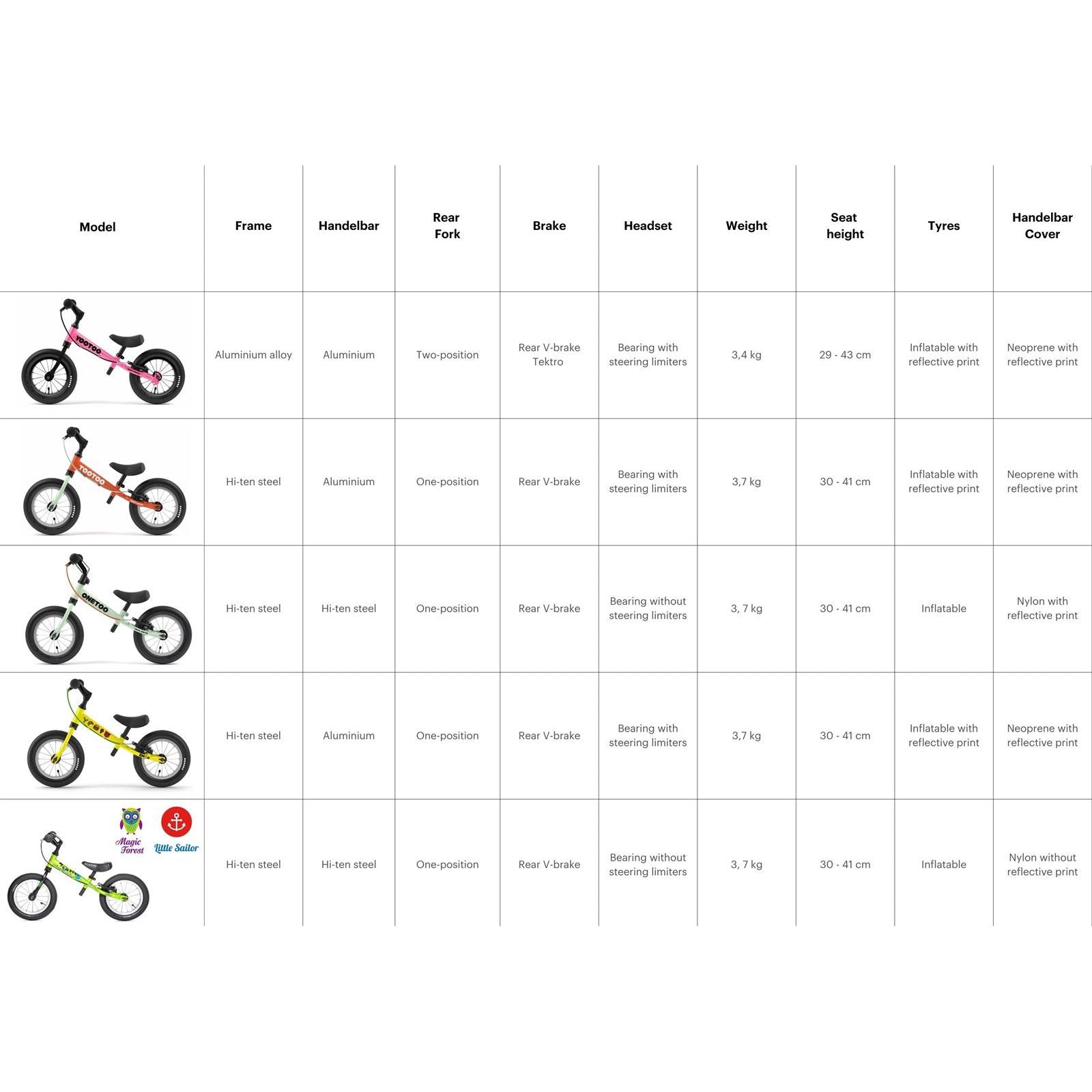 - due to a seat post set in the frame under a specific angle, the space between the seat and handlebar increases when putting the seat higher and young riders thus have enough space and comfort, regardless of whether they are one and a half or five years old