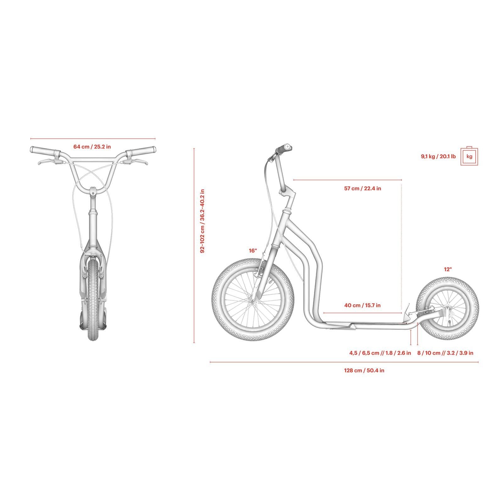 However, older children, recreational enthusiasts and active seniors will enjoy it not only on their way to the patisserie but also en route to the pool. Surprisingly quick pick-up from well-inflated tires, the City Scooter is easy to control and fits into every corner. You’ll be glad it barely tops 9 kg when you climb steps or hop on a tram.