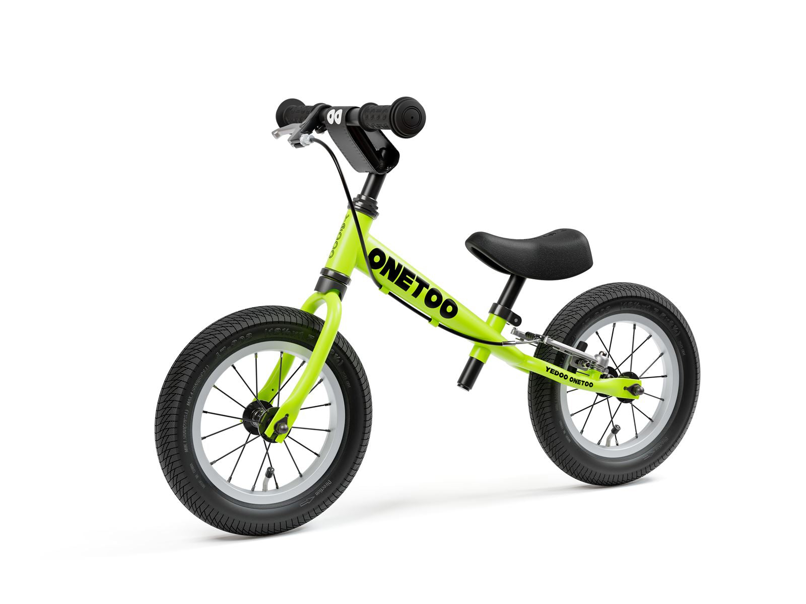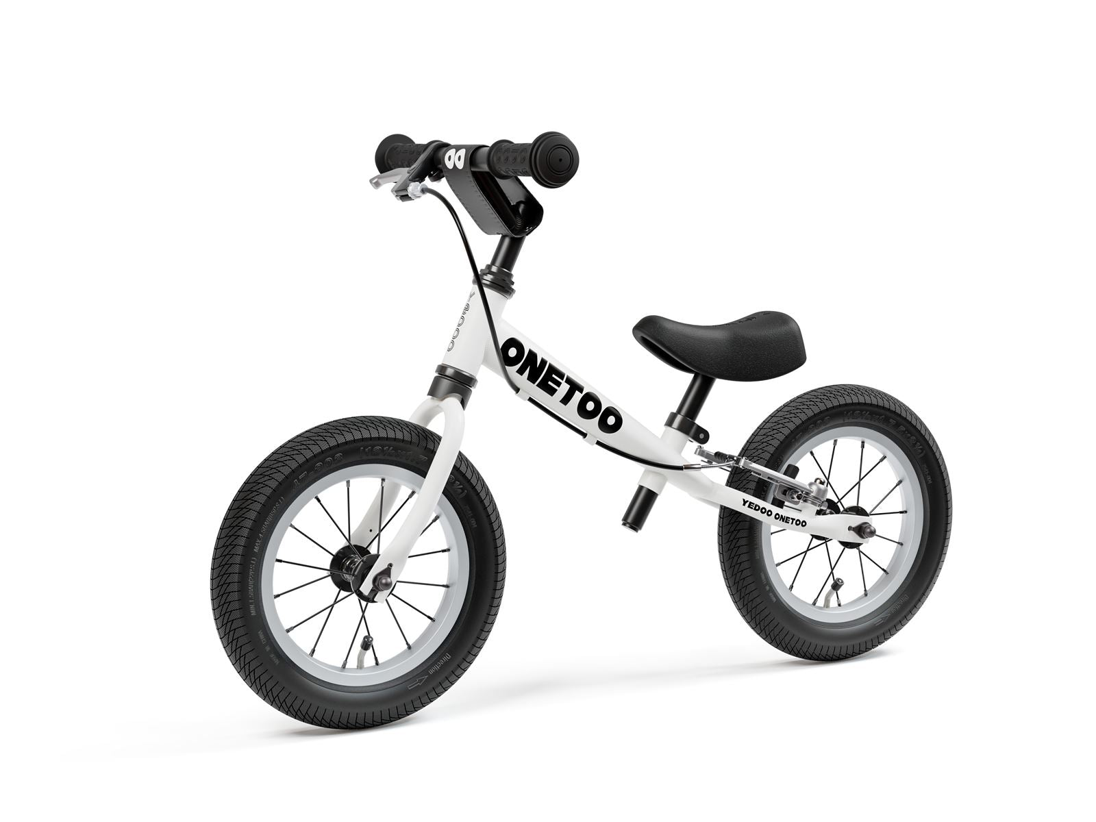 One, two... Yedoo! OneToo is the number one, everything starts with it. First steps, first discoveries, the whole sports path. They say that the Pospíšil brothers, twenty times cycle ball world champions, started with OneToo and so did the inventor of the bicycle... but we have no photos to prove it. Low weight, an anatomical seat with the right seatpost angle and soft ergonomic grips with widened, reinforced ends protecting the kid’s hand even during a fall – it all comes as standard. A reflective print on the handlebar cover comes as a bonus. Simple is beautiful. The best starter.