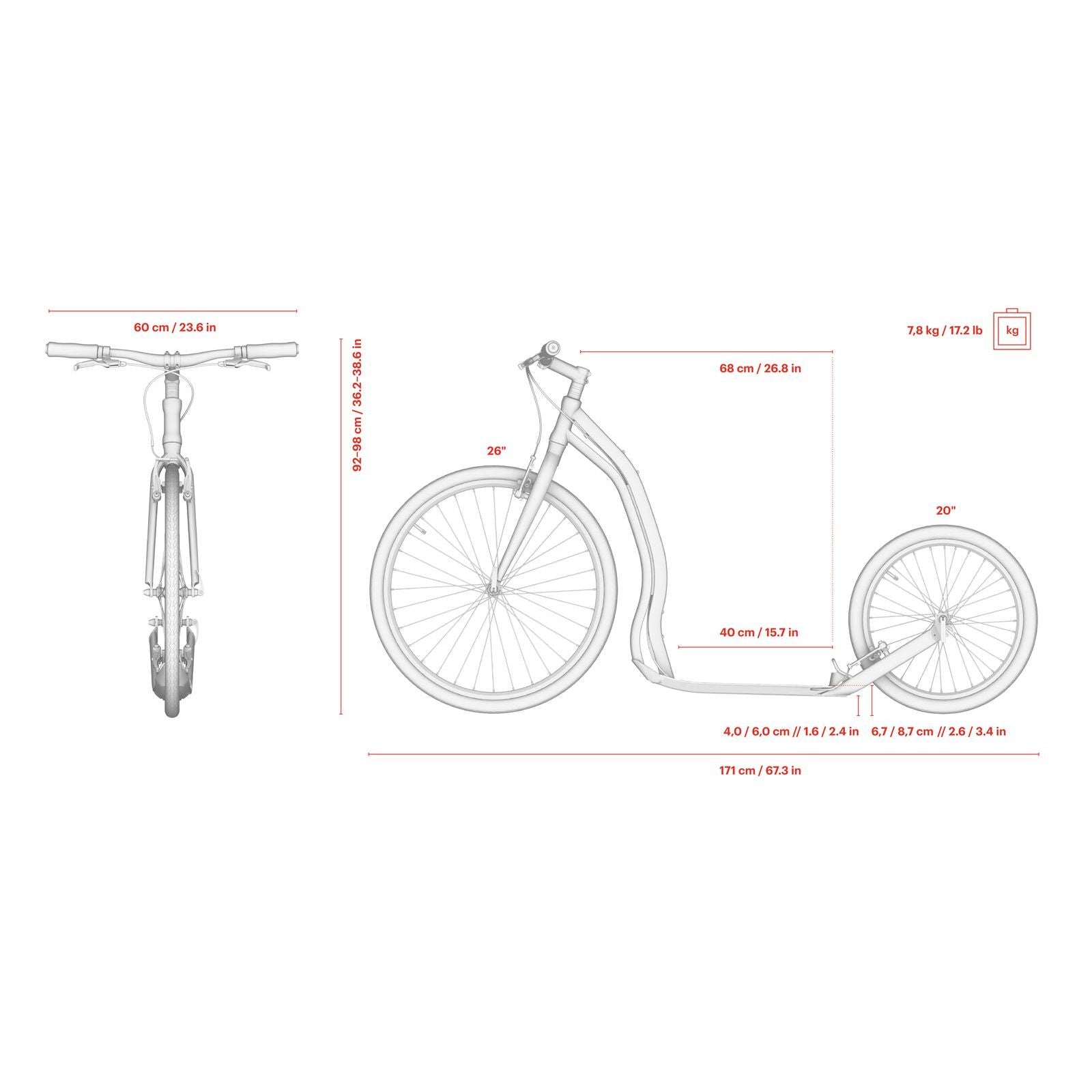 - light and solid aluminium frame (total weight of the scooter only 7.8 kg) saves the energy invested in pushing off