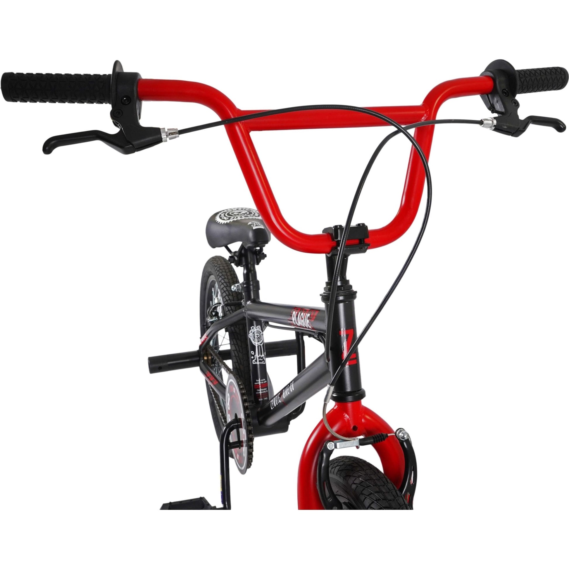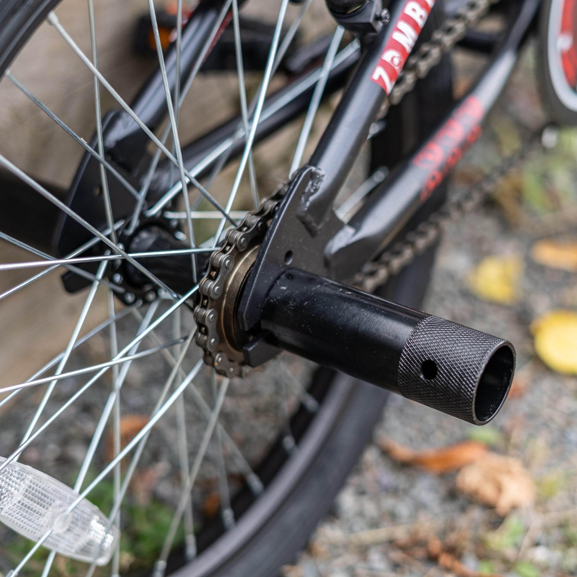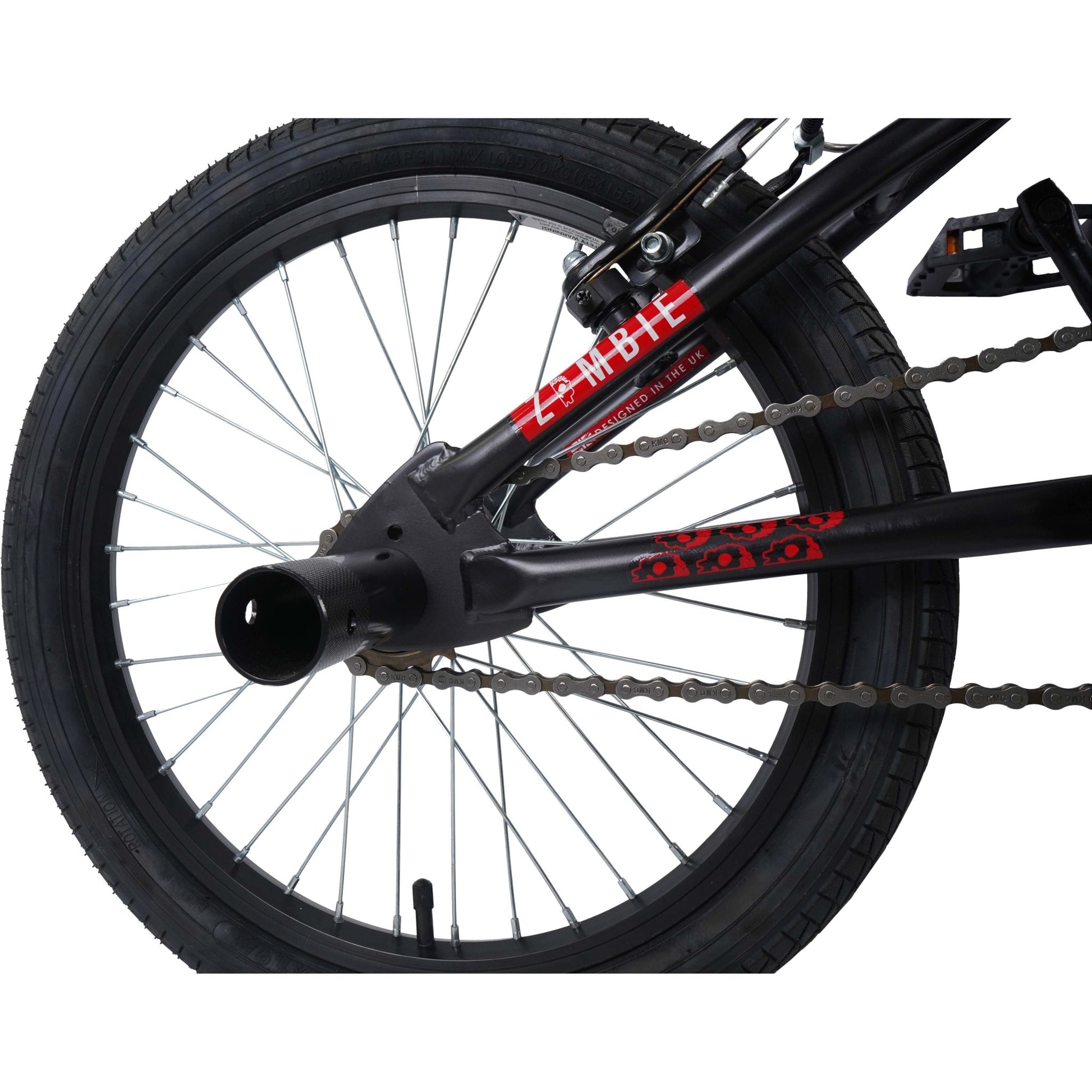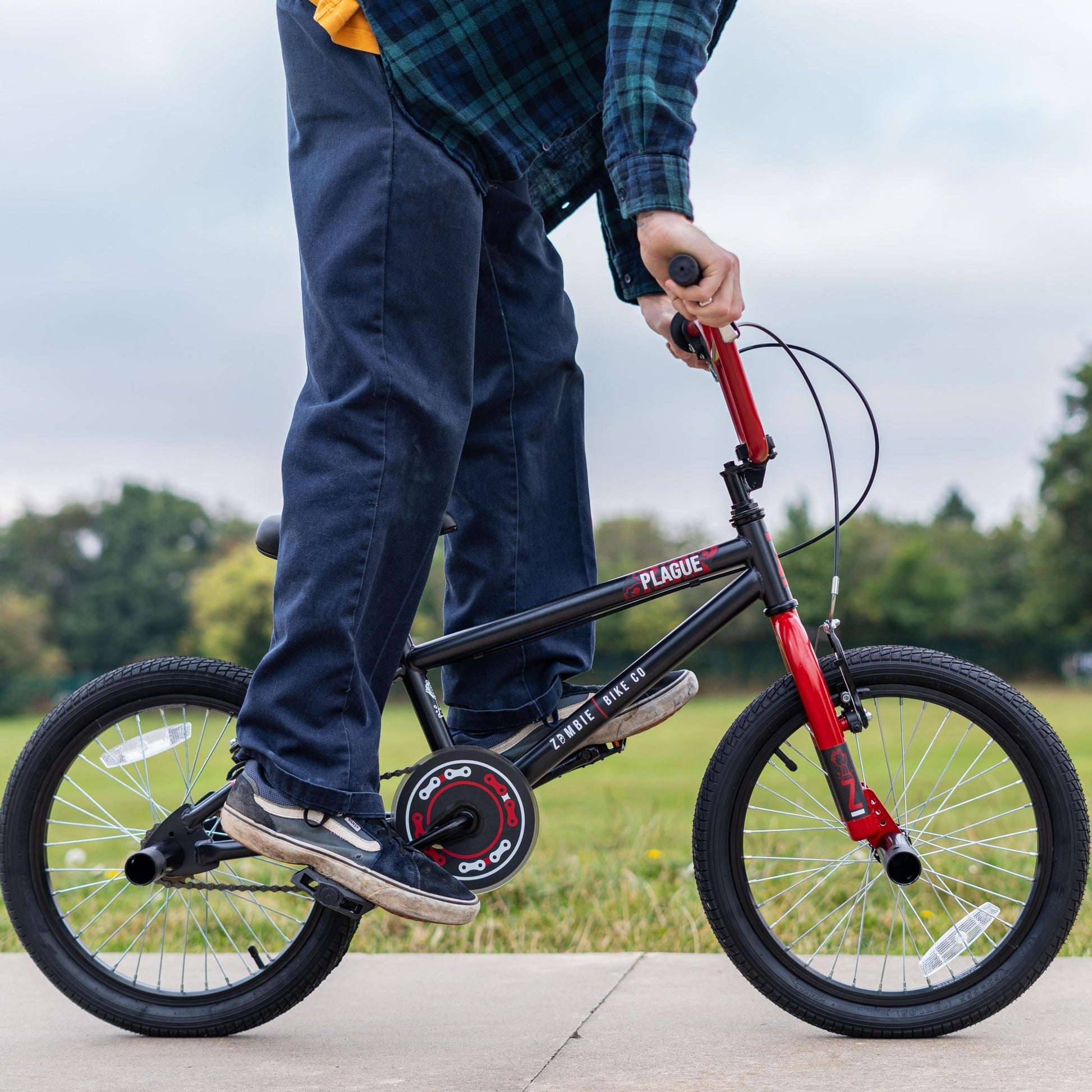 The 18" wheel Zombie Plague is a superb first junior BMX and comes equipped with everything you need to learn the tricks that will enable you to ‘own’ the local skate park as you get older and move on to a bigger 20″ wheel. It comes complete with bombproof spoked alloy wheels for lightweight performance and a set of stunt pegs that can be mounted in any one of three configurations, so what are you waiting for? Get out riding!